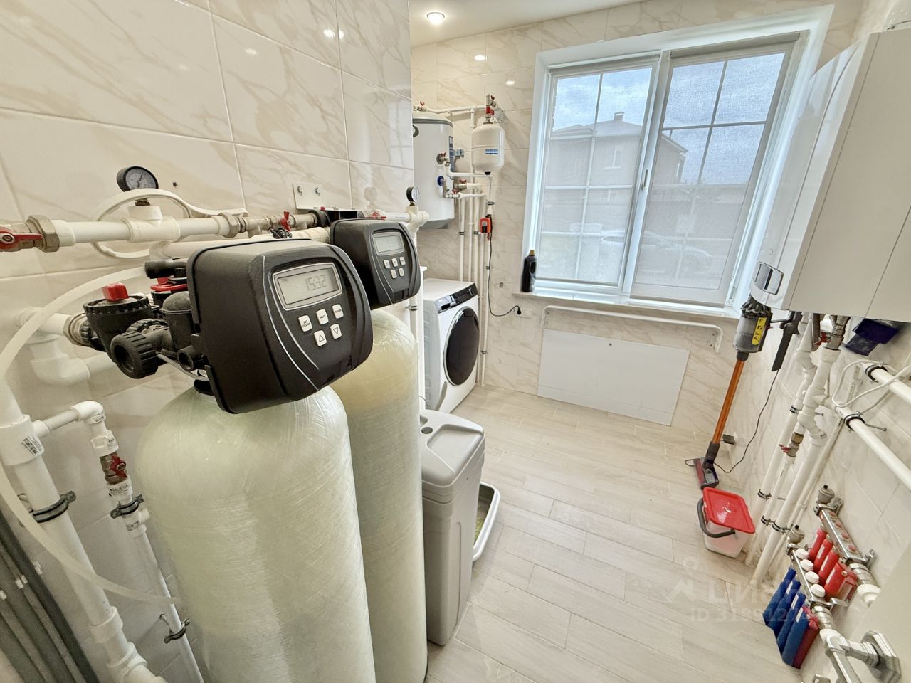 Коммуникации дома: центральное водоснабжение, канализация и электроэнергия 15 кВт, магистральный газ, газовый котел Baxi 32 кВт, инженерные сети Valtec и Stout, система очистки воды, сплит-система Royal Clima.