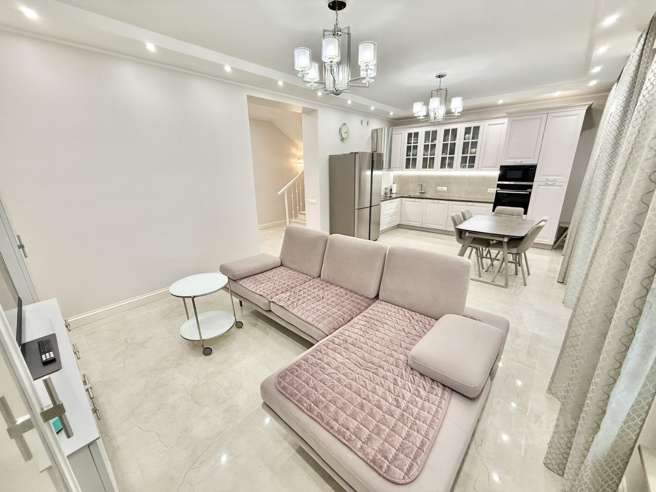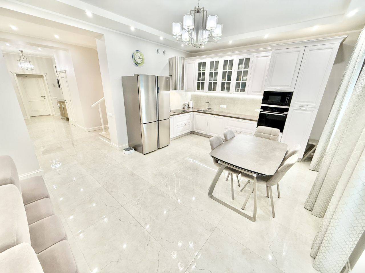 В доме останется часть мебели, включая кухню Стильные кухни с встроенной бытовой техникой Haier, шкафы во всех гардеробных.
