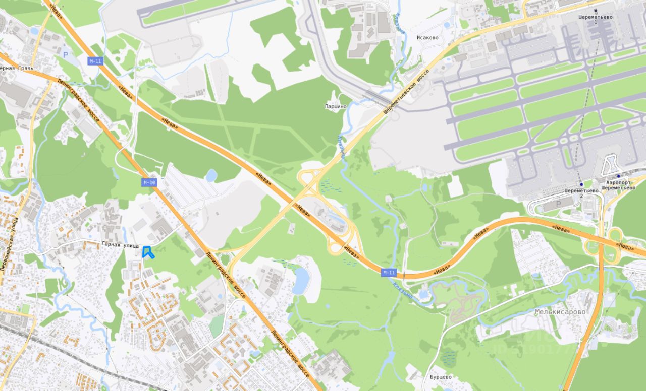Расположен рядом с а/п Шереметьево и Ленинградским шоссе на углу Тепличного проезда и Горной улицы.