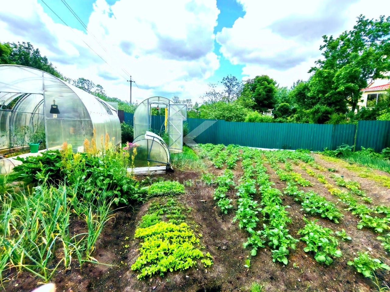 Участок ухоженный , облагороженный,много зелёных насаждений. Отдельно располагается огород с парником и предусмотренными грядками. Есть на участке большой утепленный вольер для собак с отдельно огороженной зоной для выгула.