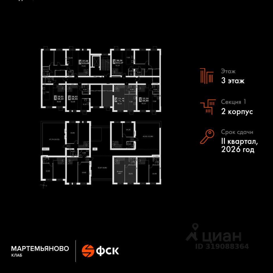 Прямая продажа от застройщика! Жилой Комплекс класса Комфорт. Продаётся 2-к квартира номер 19 общей площадью 71.76 кв.м на 3-м этаже 3 этажного дома. Без отделки.