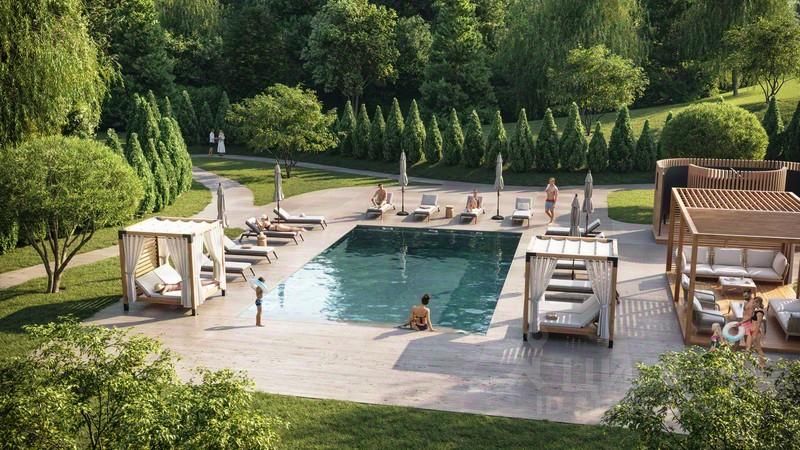 Внутренняя инфраструктура: Сердце поселка - живописный пруд. У пруда расположен собственный пляж. Здесь так приятно проводить жаркие летние дни. А в зимние холода гладь пруда превращается в веселый каток. И, поверьте, дарит не меньше счастья.