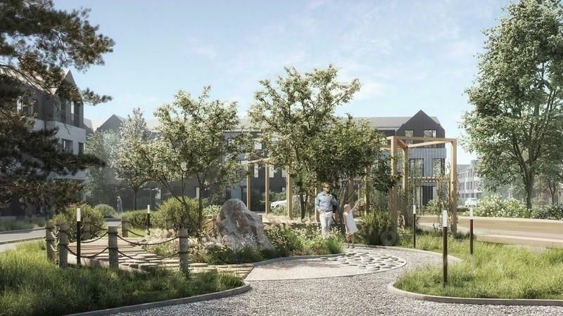 У пруда берет начало главная пешеходная артерия поселка - прогулочный бульвар длиною 1,8 км. Он ведет в лесную зону с ручьем и сам напоминает реку, только сухопутную. 3,3 га парковой зоны наполняют окружающее пространство энергией динамичных зон, которые сменяются зонами спокойствия. У бульвара есть ''притоки'' - второстепенные пешеходные улочки с площадками для игр и тихого отдыха.