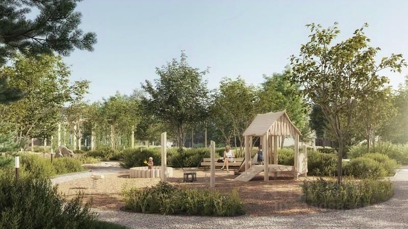 У пруда берет начало главная пешеходная артерия поселка - прогулочный бульвар длиною 1,8 км. Он ведет в лесную зону с ручьем и сам напоминает реку, только сухопутную. 3,3 га парковой зоны наполняют окружающее пространство энергией динамичных зон, которые сменяются зонами спокойствия. У бульвара есть ''притоки'' - второстепенные пешеходные улочки с площадками для игр и тихого отдыха.