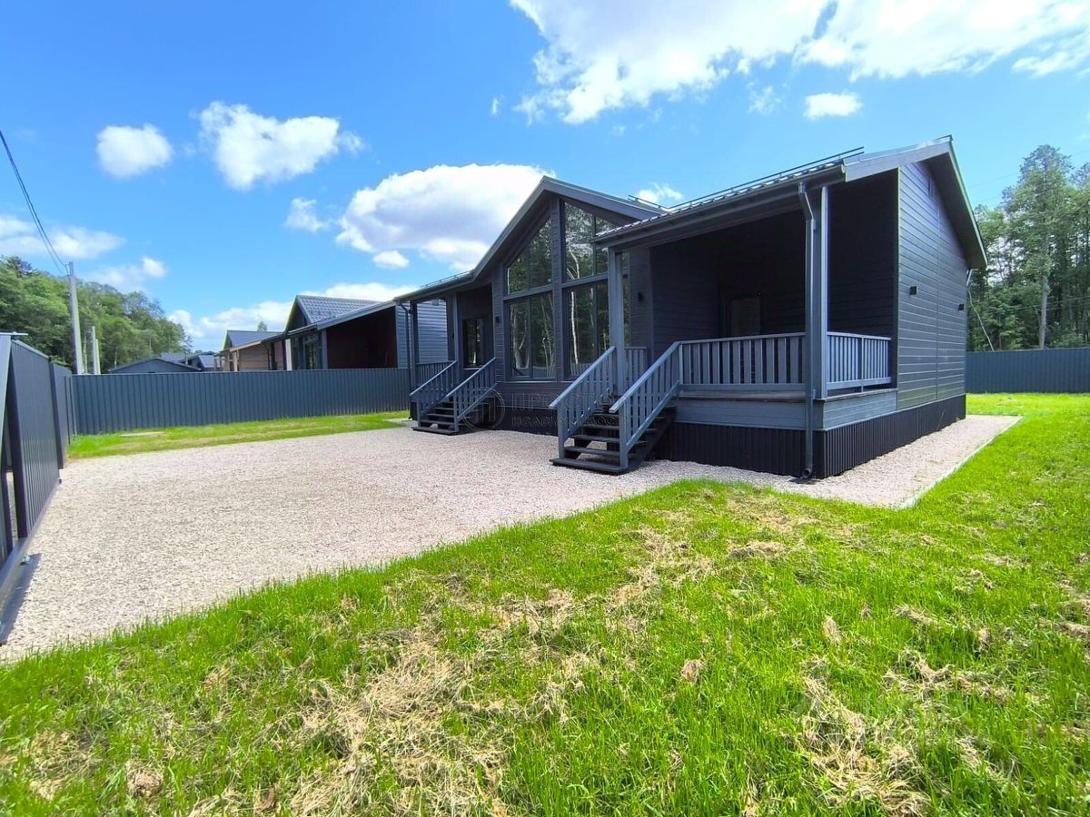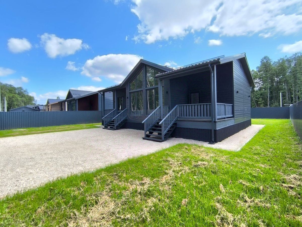Площадь и планировка: Общая площадь дома составляет 119,1 кв. м, из которых 61 кв. м — жилая площадь. Дом имеет четыре комнаты с площадями 12 кв. м, 12 кв. м, 12 кв. м и 25 кв. м, а также две совмещённые ванные комнаты. Высота потолков — 3 метра, панорамное остекление, что создаёт ощущение простора и свободы.