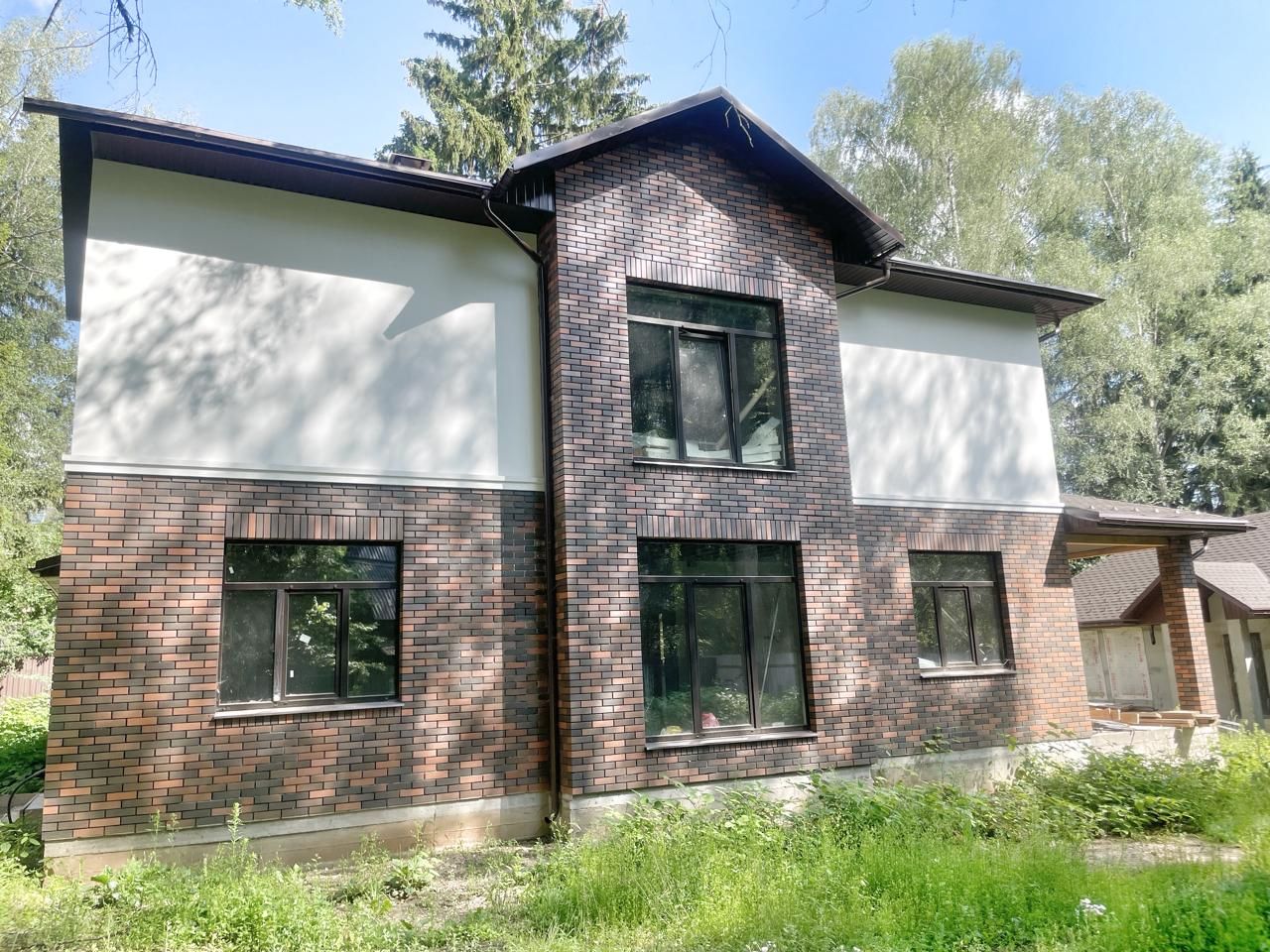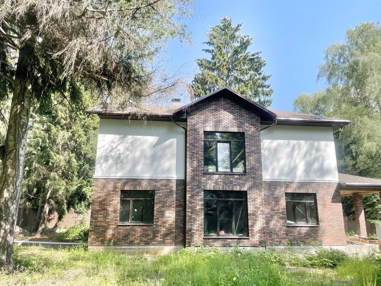 Киевское ш., 28 км, г. о. Апрелевка. Коттедж 220 кв. м под финишную отделку в стародачном поселке Фрунзевец (бывшие Генеральские Дачи). Дом 2024 года постройки из кирпича, перекрытия монолит, фундамент лента 1,8 м + монолитная плита. 2 этажа. Высокие потолки, полы стяжка, водяной теплый пол 1 этаж, холл и санузлы 2 этажа. Смонтировано отопление, заведена вода, дом топится. 1 этаж кухня-столовая-гостиная с выходом на патио и на участок, гостевая спальня (или кабинет), гостевой с/у, постирочная. 2 этаж спальня с ванной комнатой, спальня с гардеробной, спальня, с/у. Коммуникации: электричество, газ магистральный, вода скважина, канализация Топас 10 (в процессе установки). Участок 22 сотки под ИЖС, ровный, лесной. На участке вековые сосны, ели, липы и березы. Въездная группа забетонированная площадка. Ворота откатные автоматические. На участке баня с бассейном 70 кв. м из кирпича под отделку, навес на 2 мм, котельная. Солидное окружение, многие проживают постоянно. Тихое место с отличной экологией. В шаговой доступности большой супермаркет Мираторг, поселковый продуктовый магазин, несколько кафе. В 5 мин. на машине развитая инфраструктура цента Апрелевки. 10 мин. до г. Селятино. Удобная транспортная доступность с Киевского, Боровского шоссе, Северного Обхода Одинцово. Ж/д станция Дачная в 10 мин. пешком. Ж. вокзал и МЦД4 Апрелевка в 5 мин. на машине.