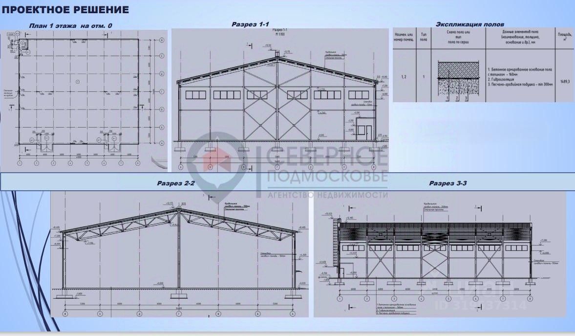 Комплекс состоит из 2 зданий, каждое из которых выполнено по типовому проекту. Помещения прямоугольные, светлые, с окнами, стены и крыша из сэндвич панелей, Полы бетонные с покрытием Антипыль, нагрузка 6 тонн / кв.м. Размер каждого здания: 32 х 46 м. Высота потолков 9 м. Двое ворот на нулевом уровне под фуру. Выведена мокрая точка. Есть возможность установки 10-тонной кран-балки. Стены - 100 мм, двускатная кровля - 150 мм, остекление по периметру. Каркас здания выполнен из металлических колонн. Шаг рам 4 х 6 м. Шаг между колоннами 18 м.