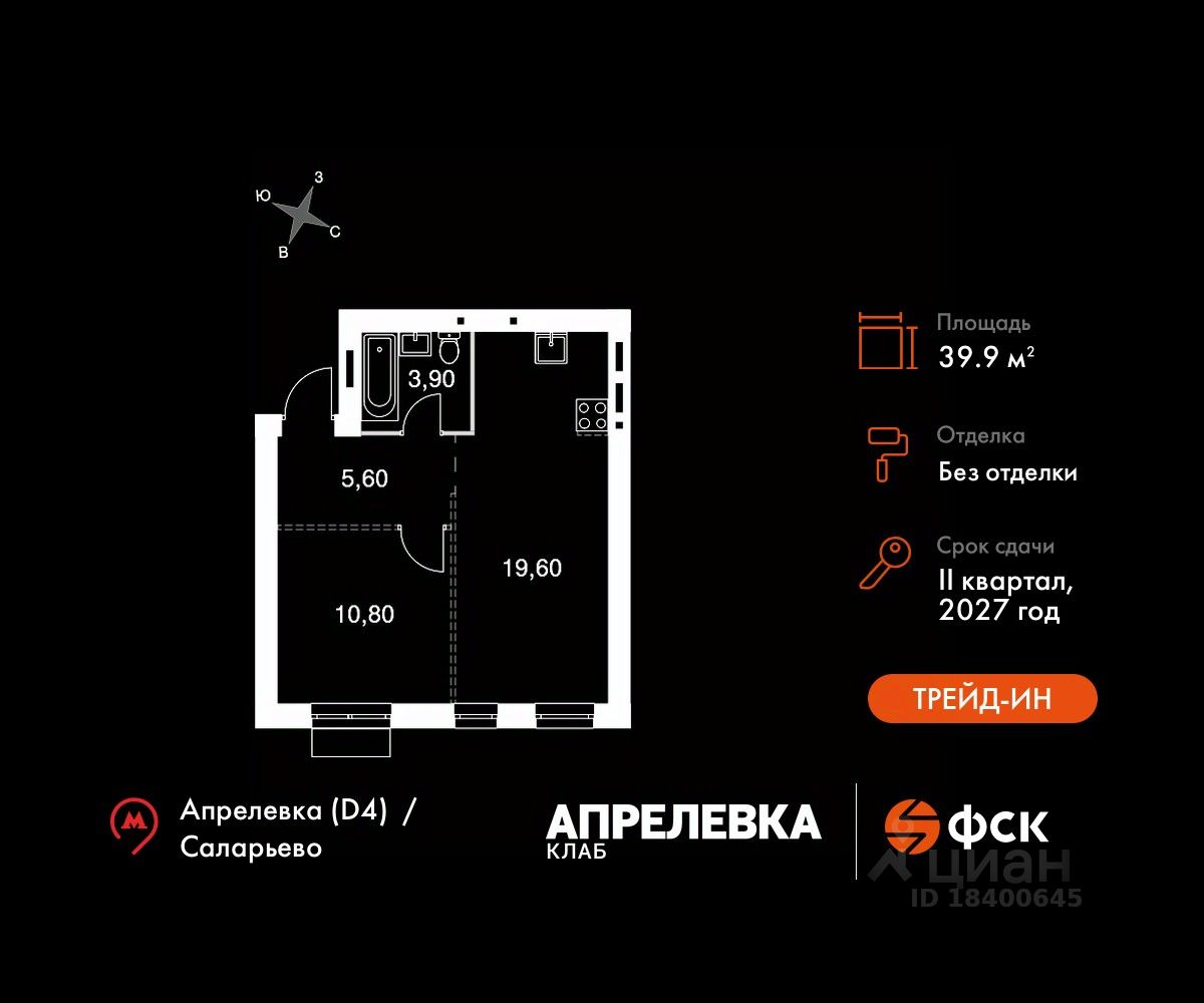 Общая площадь39,9 м2