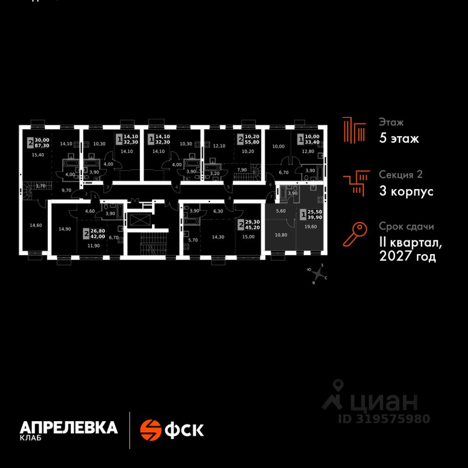 Прямая продажа от застройщика! Загородный жилой комплекс класса Комфорт Плюс. Продаётся 2-к квартира номер 64 общей площадью 39.9 кв.м на 5-м этаже 5 этажного дома. Без отделки.