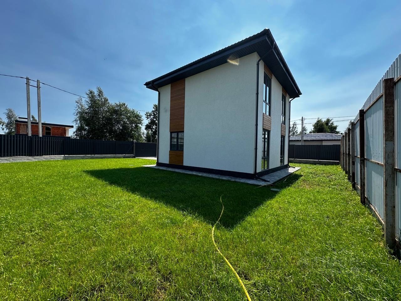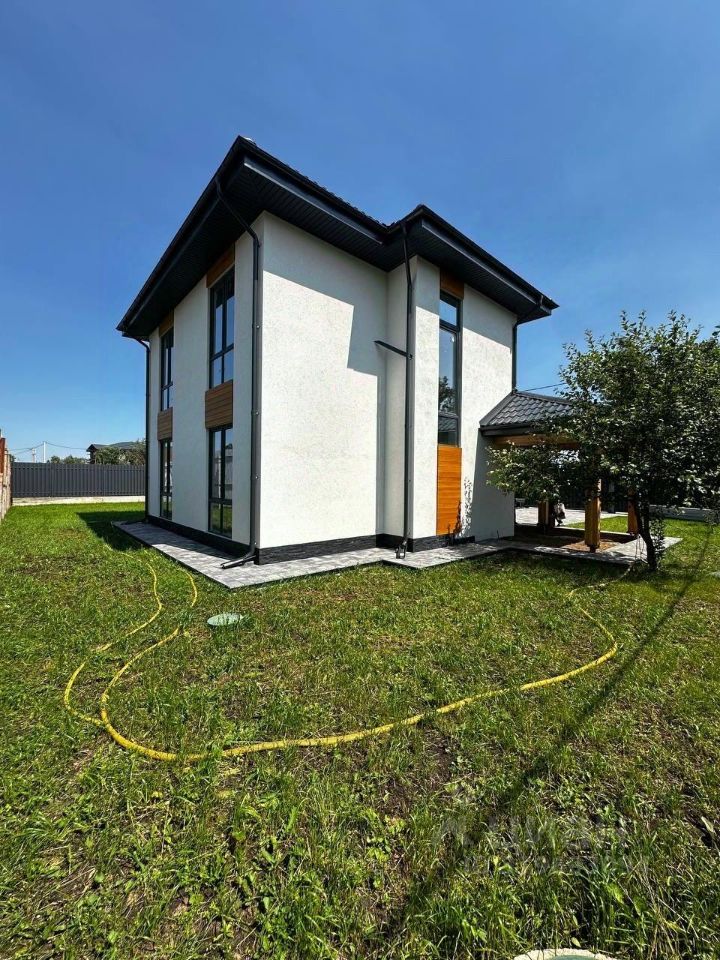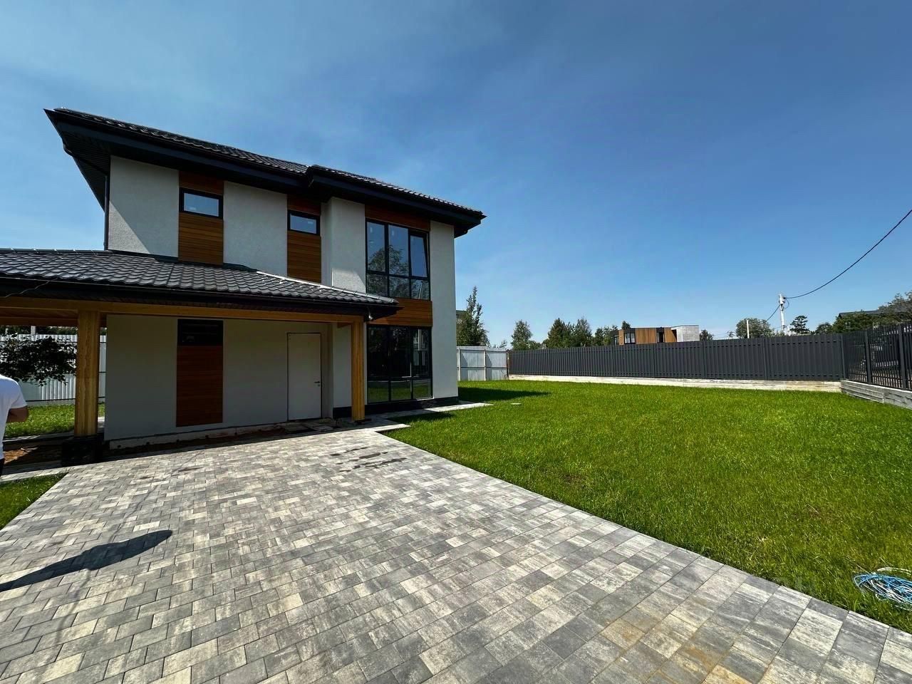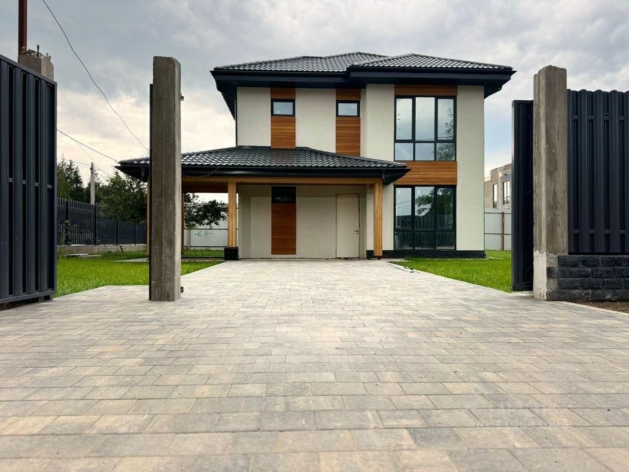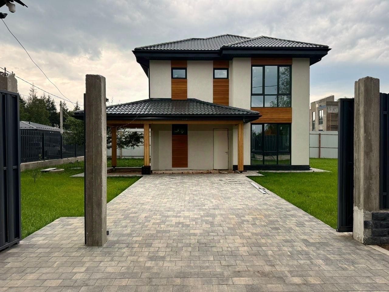 Продается новый капитальный двухэтажный дом, построенный по современным технологиям из высококачественных материалов. Выполнена предчистовая отделка. Технические данные: Фундамент из монолитной плиты 35 см Стены из пеноблоков 30 см + 5 см утеплитель Облицовка фасада короед Межэтажные перекрытия - железобетонные плиты Кровля черепица 5 см Панорамные трехкамерные энергосберегающие окна производства REHAU Установлено ограждение участка из металлического штакетника
