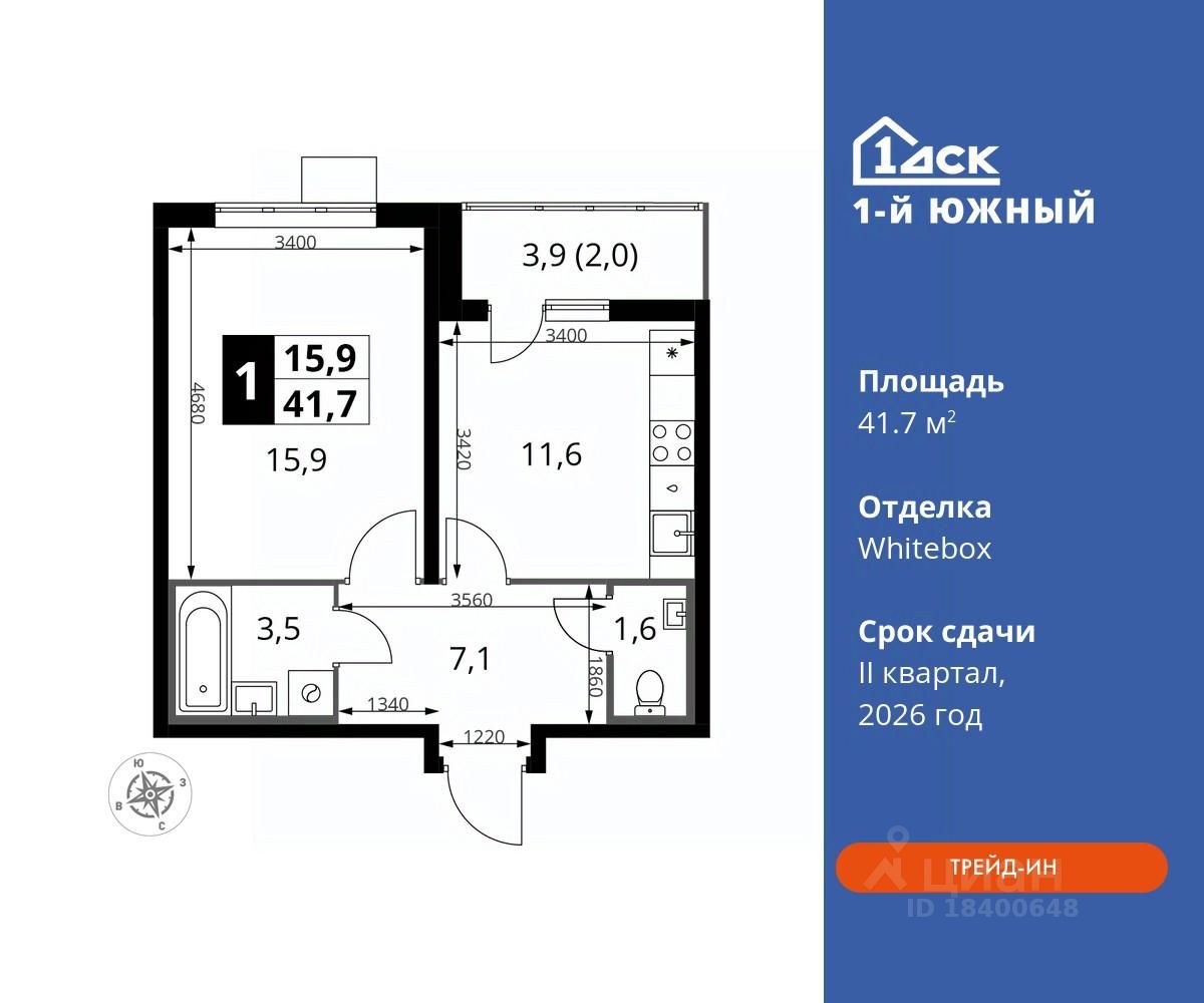 Максимальные скидки при 100% оплате. Trade-in вместо первоначального взноса - выгодно обменяйте вашу квартиру на новую! Прямая продажа от застройщика! Жилой Комплекс класса Комфорт плюс. Продаётся 1-к квартира номер 38 общей площадью 41.7 кв.м на 11-м этаже 25 этажного дома. Отделка Whitebox.