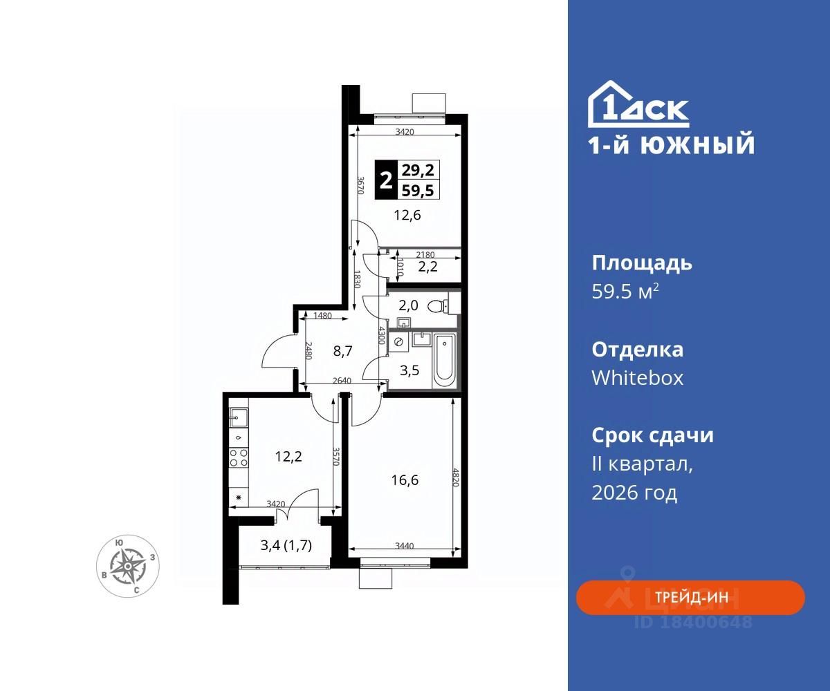 Максимальные скидки при 100% оплате. Trade-in вместо первоначального взноса - выгодно обменяйте вашу квартиру на новую! Прямая продажа от застройщика! Жилой Комплекс класса Комфорт плюс. Продаётся 2-к квартира номер 140 общей площадью 59.5 кв.м на 12-м этаже 25 этажного дома. Отделка Whitebox.