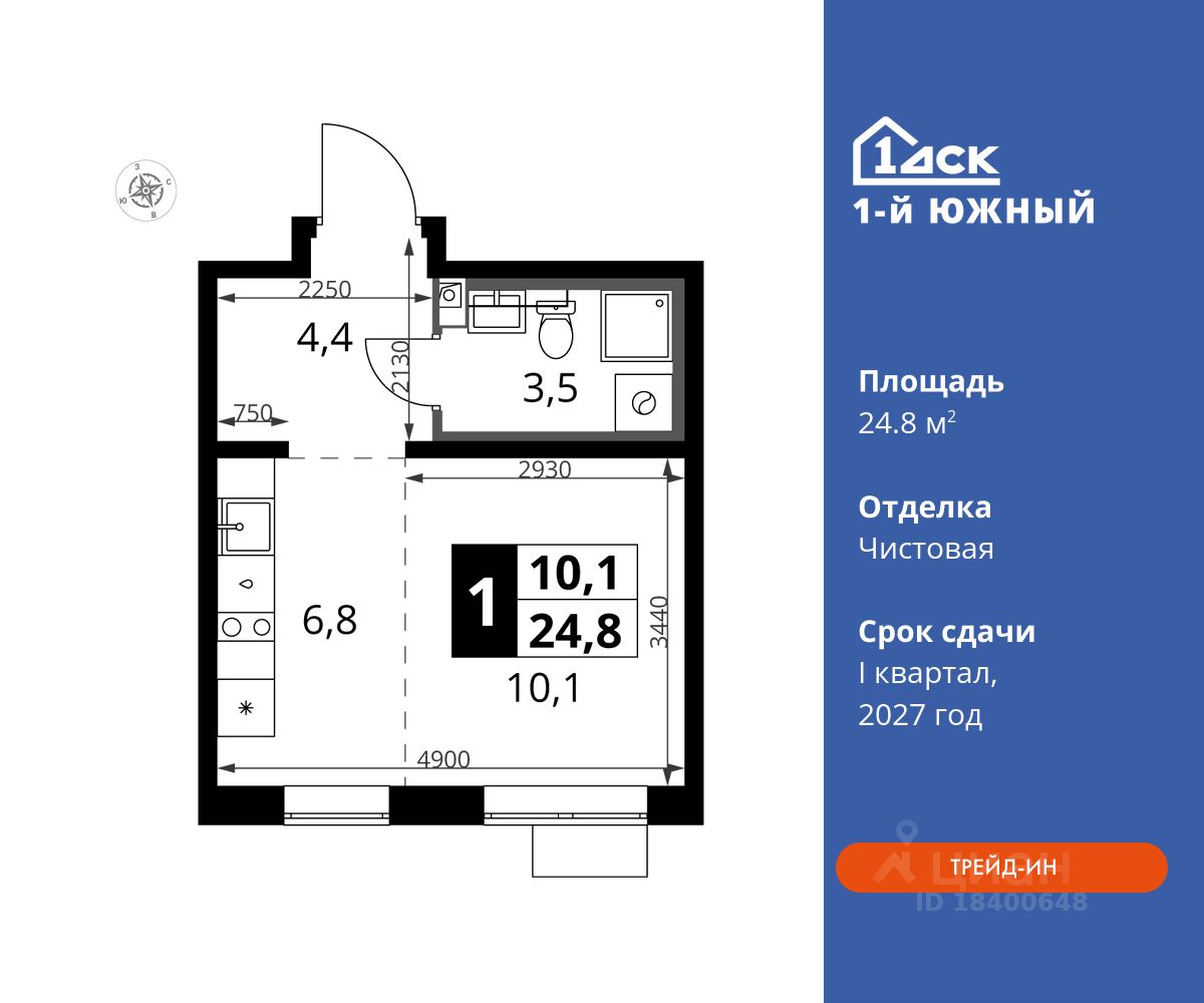 Максимальные скидки при 100% оплате. Trade-in вместо первоначального взноса - выгодно обменяйте вашу квартиру на новую! Прямая продажа от застройщика! Жилой Комплекс класса Комфорт плюс. Продаётся студия номер 150 общей площадью 24.8 кв.м на 9-м этаже 24 этажного дома. Чистовая отделка.