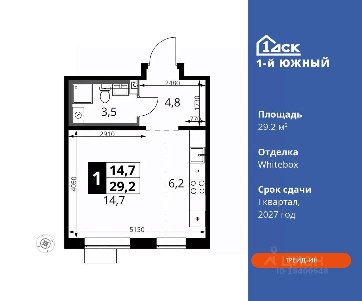 Максимальные скидки при 100% оплате. Trade-in вместо первоначального взноса - выгодно обменяйте вашу квартиру на новую! Прямая продажа от застройщика! Жилой Комплекс класса Комфорт плюс. Продаётся студия номер 512 общей площадью 29.2 кв.м на 20-м этаже 24 этажного дома. Отделка Whitebox.