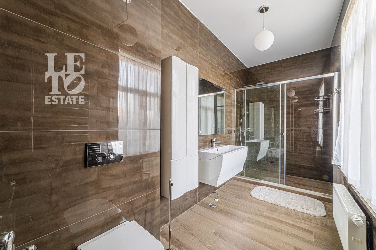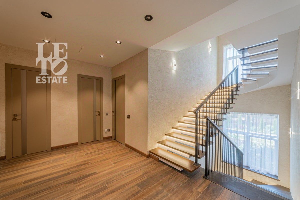 Дом построен из высококачественного керамического блока BRAAS, утеплен, облицован лиственницей и искусственным камнем. В доме железобетонные перекрытия, межкомнатные перегородки - кирпичные. Дизайн интерьеров выдержан в современном стиле, стены окрашены в спокойной цветовой гамме. Полы в доме - паркетная доска и керамогранитная плитка. Есть водяной подогрев пола везде, где лежит керамогранит. Вдоль оконных проемов установлены напольные конвекторы. Окна - панорамные. Для летнего времени в доме установлена система геохлаждения. Установлен газовый котел Logamax plus GB 172-42i. Дом продается с мебелью. Предусмотрена архитектурная подсветка дома. Участок площадью 22 сотки хорошо освещен и имеет правильную форму. На участке сделаны: дренаж, система полива, освещение, ландшафтный дизайн. Коммуникации центральные - канализация, электричество, газ, водоснабжение (дополнительно есть резервная собственная скважина), ливневая канализация.