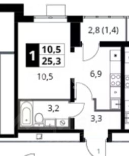 В продаже студия с чистовой отделкой в сданном доме, расположенная на 17 этаже 25-этажного дома.