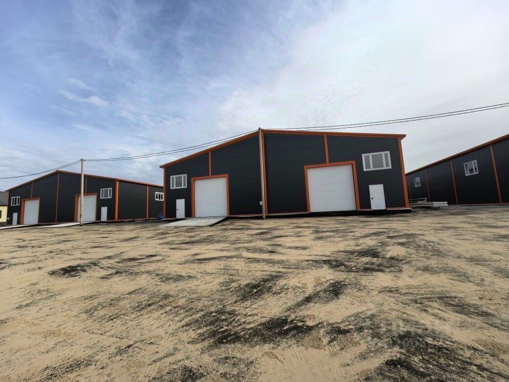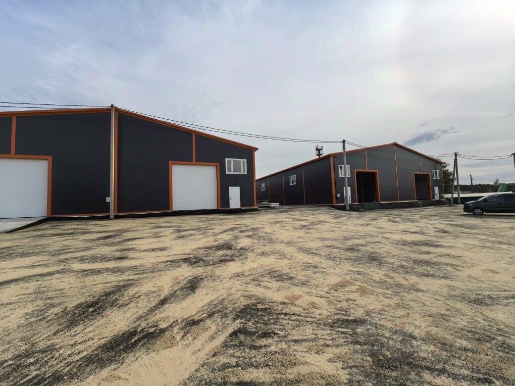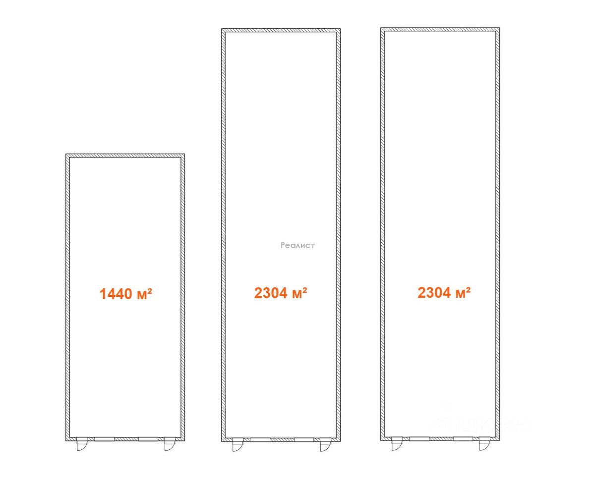 Три рядом стоящих склада. Два из них размером 24*96 метров. Один 24*60 метров.