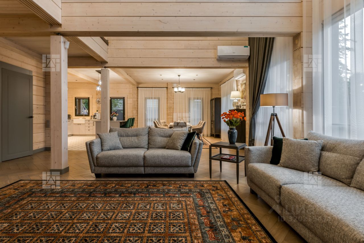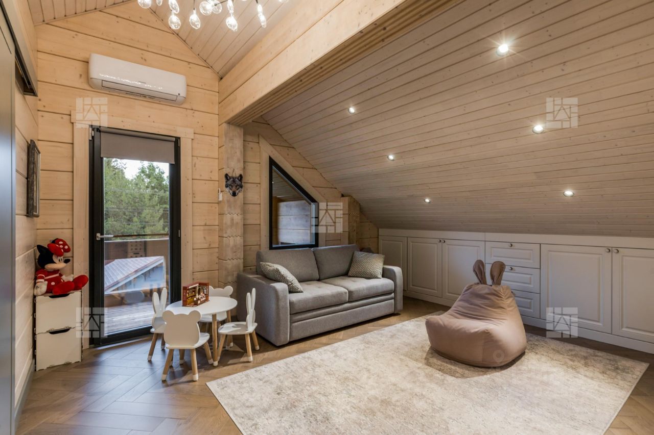 Лот: 69. Эксклюзив! Предлагается невероятно качественный и уютный дом-шале, который строили для себя! Дом выполнен из натурального клееного бруса нестандартного широкого размера 260х240, дом в котором легко дышится, пахнет свежестью и благородным деревом. Дом находится в идеальном состоянии, готовый к незамедлительному проживанию и не требует никаких вложений или переделок. Прекрасная планировка дома была продумана до мелочей, что сделает проживание ещё более комфортным. Более подробно о планировочном решении. На 1-м этаже расположены: кухня-столовая с гостиной (100м), спальня-1 с гардеробной (20м+3м), постирочная (10м), гостевой санузел, банный блок с сауной (20 м), кладовая (10м). На 2-м этаже расположены: мастер-спальня со своим санузлом и гардеробной (32м), кабинет (9м), спальня (18м), ванная (12м), детская (32м). В доме 4 уютные террасы. Огромное внимание в доме уделено хранению, предусмотрены не только гардеробные и кладовки, но и встроенные шкафы для дополнительного хранения, которое никогда не бывает лишним. На территории участка есть хоз.блок (25кв.м.) для хранения инвентаря, крупногабаритных предметов, шин, техники и тд. С точки зрения технической составляющей: дом подключен к центральной канализации, водоснабжению, электричеству и газифицирован (прямой договор с Газпром межрегионгаз). Мощность эл. - 20 КВт. Газовый котел Viessmann, а также есть резервный электрический котел и бензиновый генератор. В доме установлены кондиционеры, усилители сотовой связи и WiFi, что обеспечивает высокое качество связи. Дом оснащен системой охранной сигнализации с видеонаблюдением. На участке выполнен ландшафтный дизайн, выложены многочисленные цветы, деревья, кустарники и прочие растения, проведено уличное освещение, уложен элитный рулонный газон. Дополнительно на участке имеется: зона барбекю с мангалом, детский игровой дом, батут. На территории есть парковка на 2 автомобиля, а также есть 2 гостевых места во внешнем контуре. Важно отметить, что все внешним и внутренние отделочные материалы, это материалы самого высокого качества и от надежных производителей (Италия/Германия/Испания/Финляндия/Австрия,США). Некоторые позиции вообще сейчас крайне дефицитны, например немецкий клинкерный кирпич, клинкерная плитка и тд. По периметру участка сделан забор на бетонной ленте, въезд на территорию через электрические ворота. Приезжайте на просмотр и убедитесь сами в неподражаемой атмосфере и энергетике этого дома.