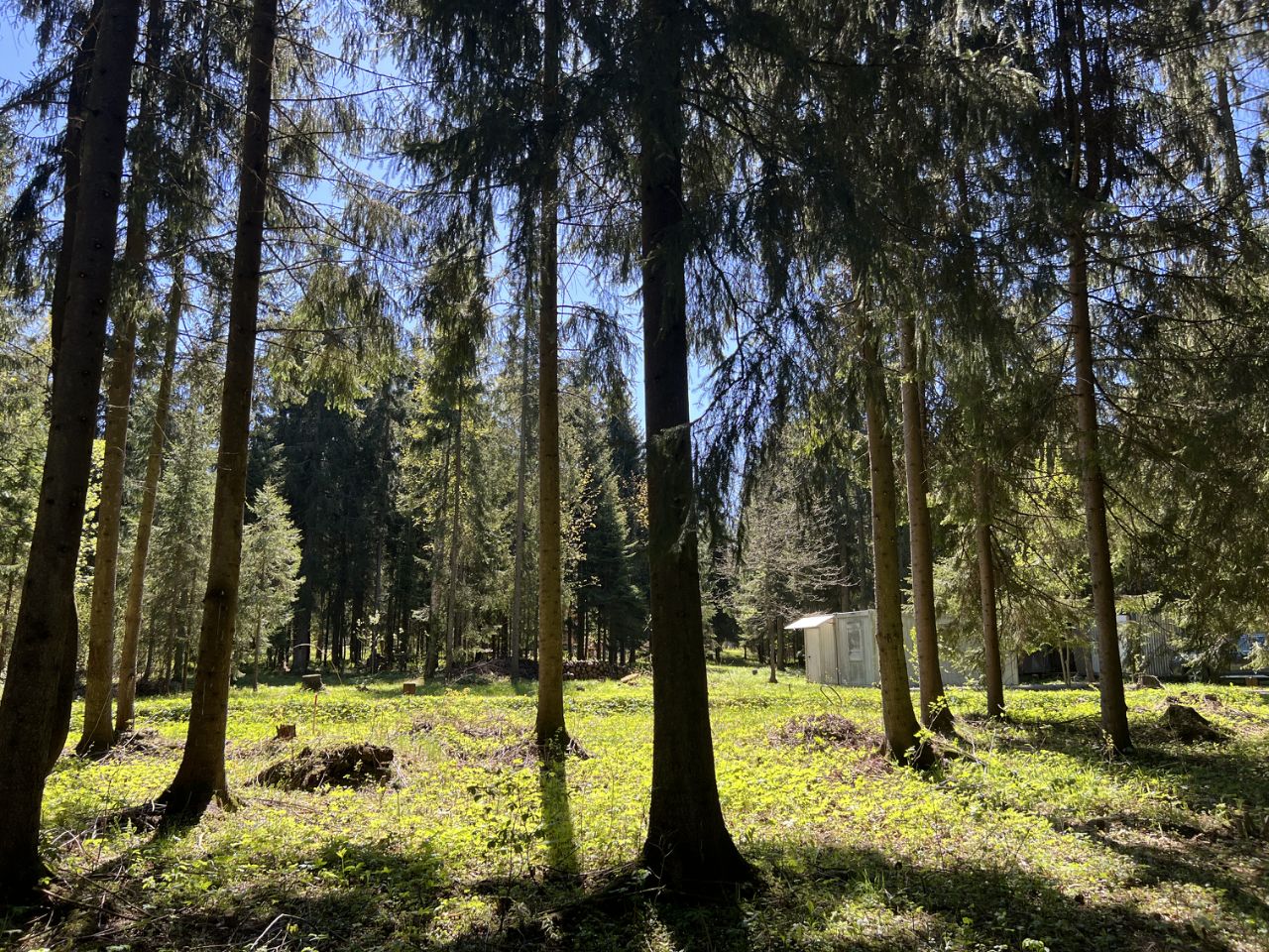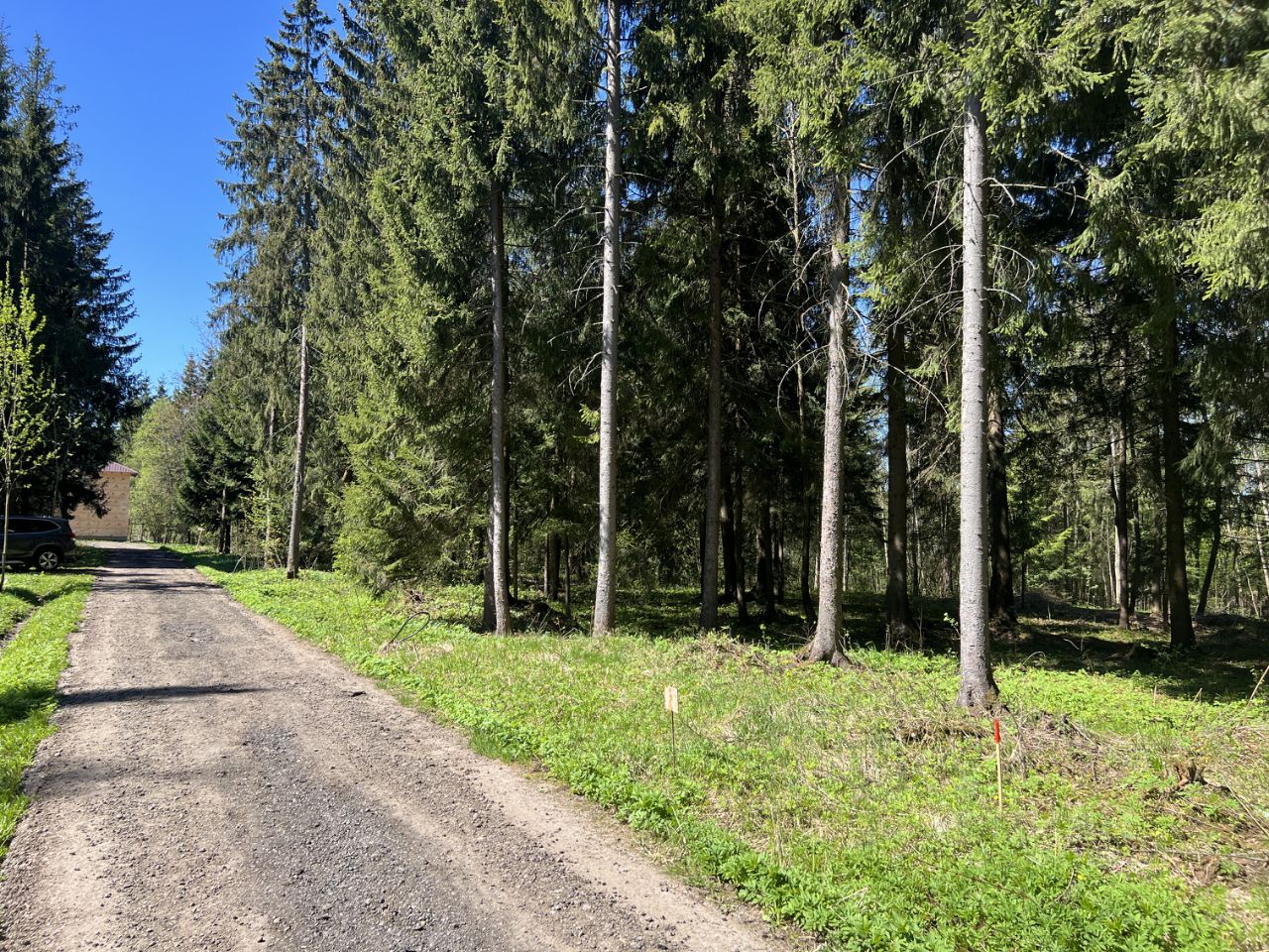 Камерный Лесной посёлок на 30 домов. Соседи живут постоянно. На участке вековые ели. Тихое и уютное место.