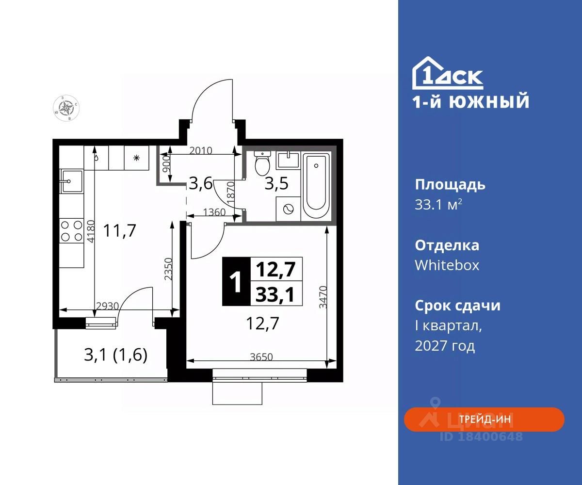 Максимальные скидки при 100% оплате. Trade-in вместо первоначального взноса - выгодно обменяйте вашу квартиру на новую! Прямая продажа от застройщика! Жилой Комплекс класса Комфорт плюс. Продаётся 1-к квартира номер 344 общей площадью 33.1 кв.м на 11-м этаже 24 этажного дома. Отделка Whitebox.