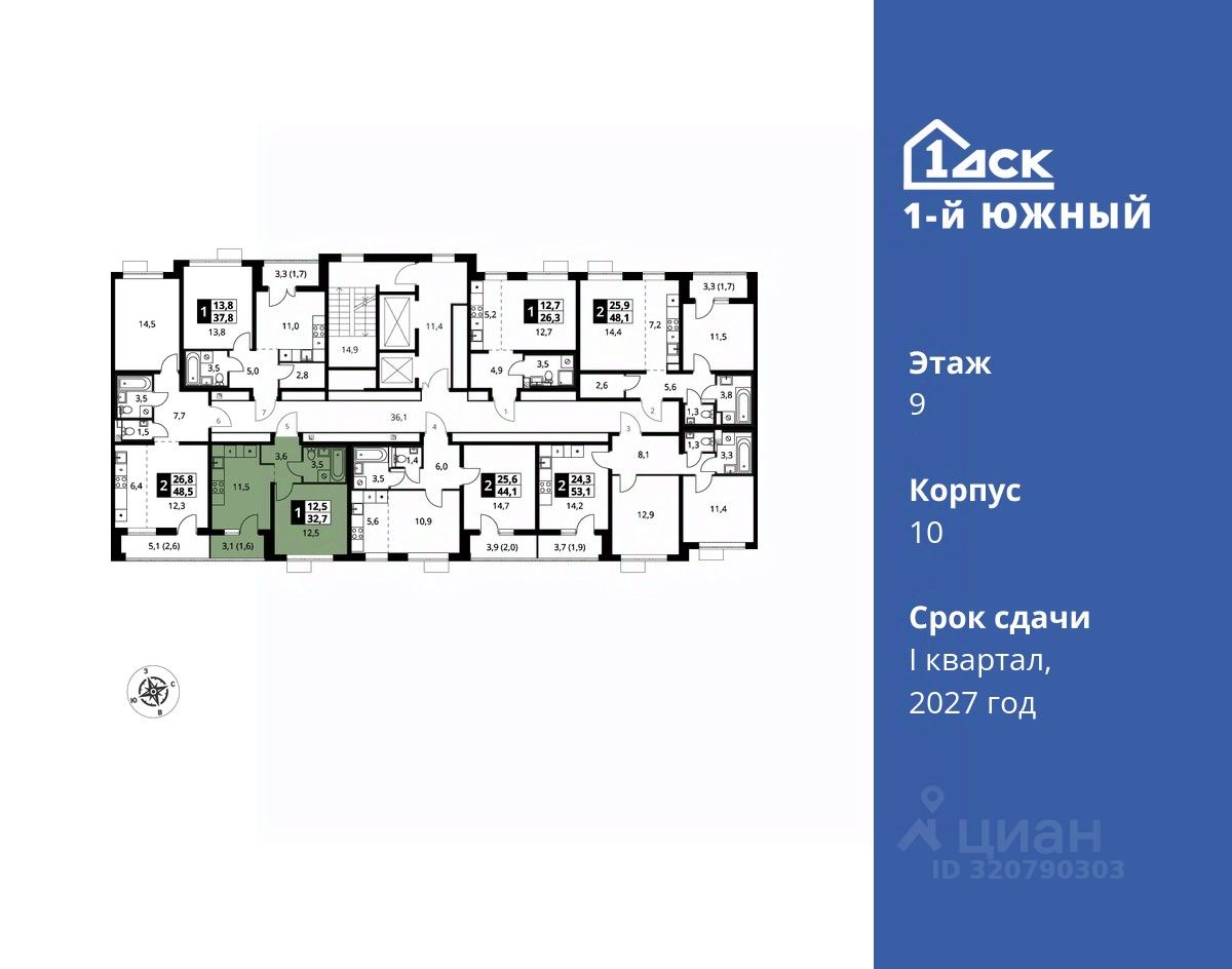 Максимальные скидки при 100% оплате. Trade-in вместо первоначального взноса - выгодно обменяйте вашу квартиру на новую! Прямая продажа от застройщика! Жилой Комплекс класса Комфорт плюс. Продаётся 1-к квартира номер 583 общей площадью 32.7 кв.м на 9-м этаже 24 этажного дома. Отделка Whitebox.