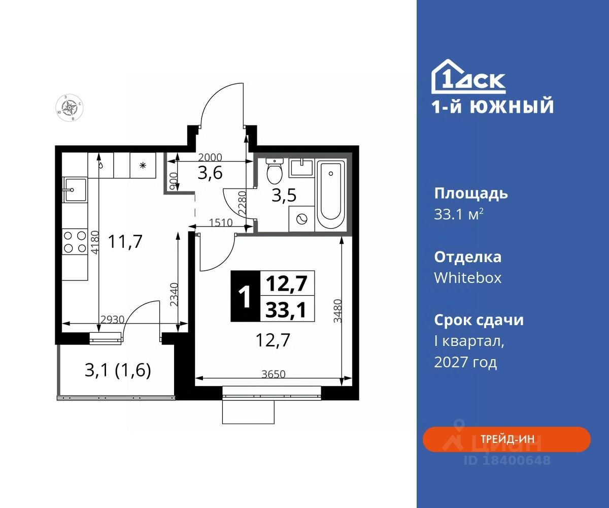 Максимальные скидки при 100% оплате. Trade-in вместо первоначального взноса - выгодно обменяйте вашу квартиру на новую! Прямая продажа от застройщика! Жилой Комплекс класса Комфорт плюс. Продаётся 1-к квартира номер 639 общей площадью 33.1 кв.м на 17-м этаже 24 этажного дома. Отделка Whitebox.
