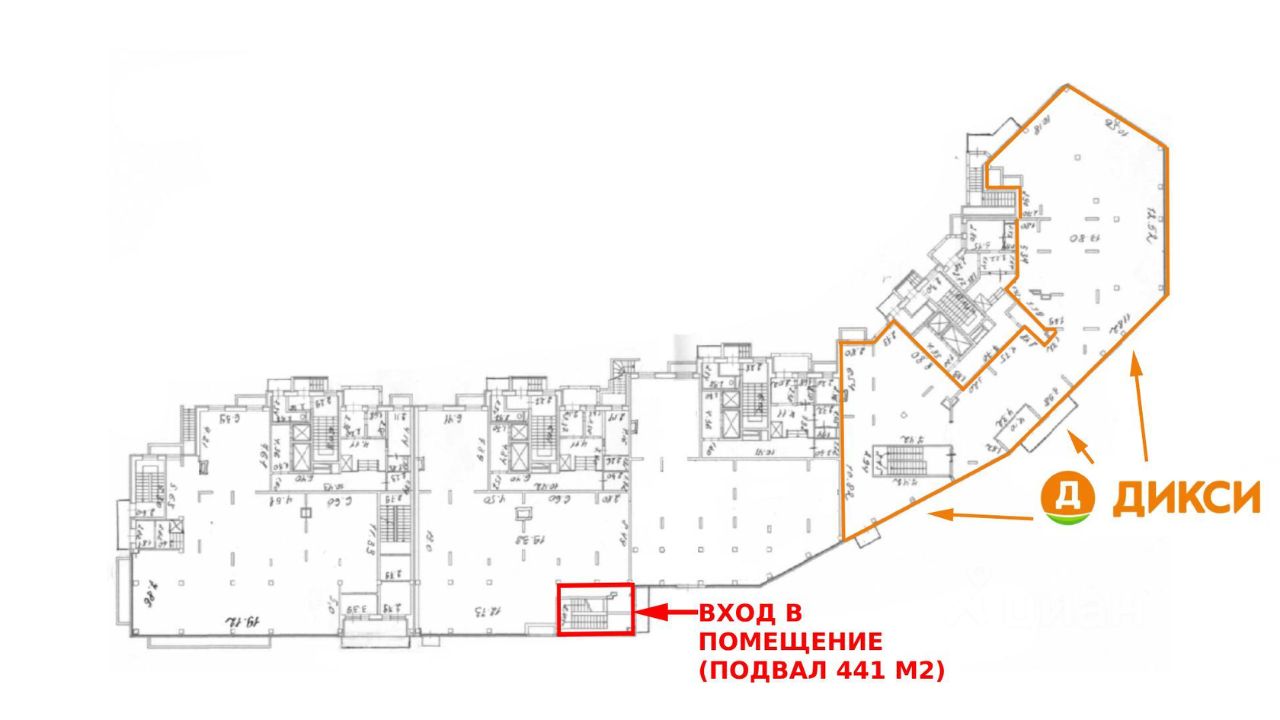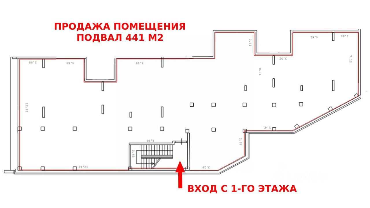 Технические характеристики: Тип здания: жилой дом, помещение встроенное, Уровень: подвал, Высота потолка, h= 3.5 м, Оконная группа: витрины, Входов: 1, отдельный, с основного фасада, Кол-во ступеней: 17,Электрическая мощность: 30 кВт, III категория, 380В-3 фазы, Вентиляция: не оборудована, Состояние: shell&core (бетон),