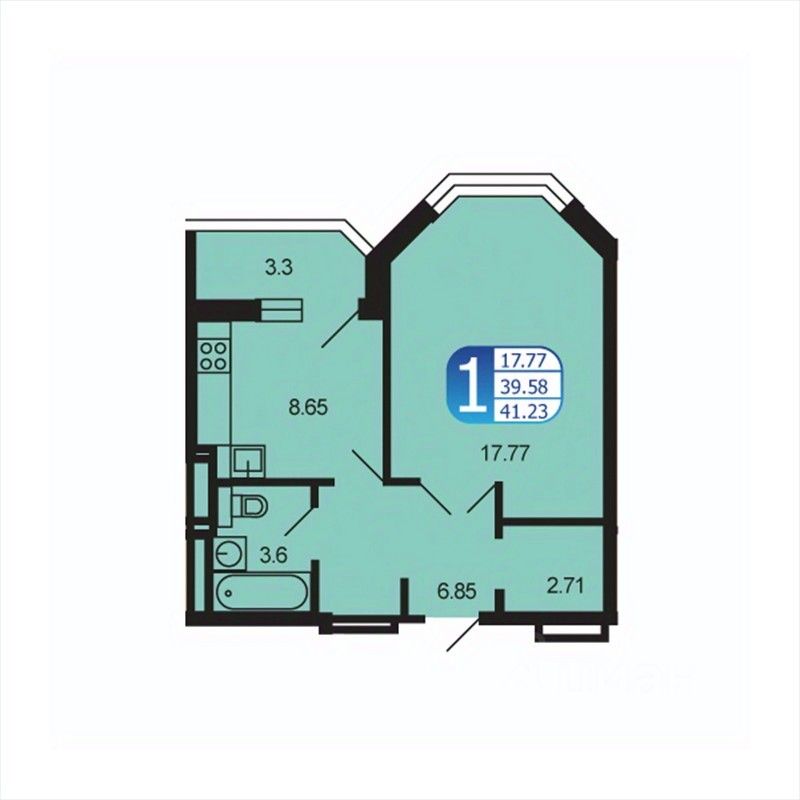 Общая площадь41,23 м2