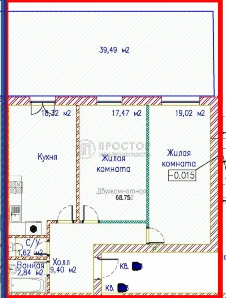 Общая площадь квартиры составляет 68,8 квадратных метров, из которых 37 квадратных метров приходится на жилую площадь. Площадь кухни — 18,32 квадратных метра, что позволит вам наслаждаться не только приготовлением пищи, но и приятным времяпрепровождением с семьёй и друзьями. Две комнаты площадью 19,02 и 17,47 квадратных метров предоставляют достаточно пространства для комфортного проживания.