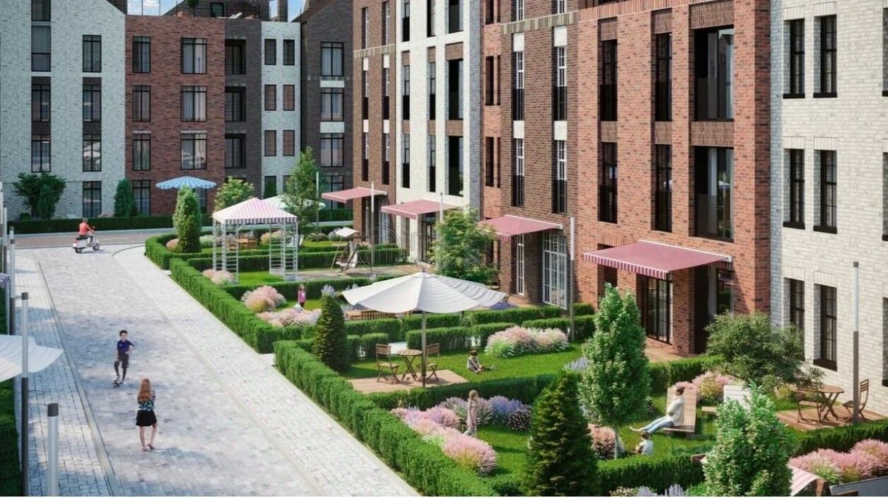 Окна квартиры выходят во двор, что обеспечивает хорошее естественное освещение и возможность наслаждаться видами и собственной террасой. Кирпичный дом с монолитными перекрытиями гарантирует прочность и надёжность конструкции.