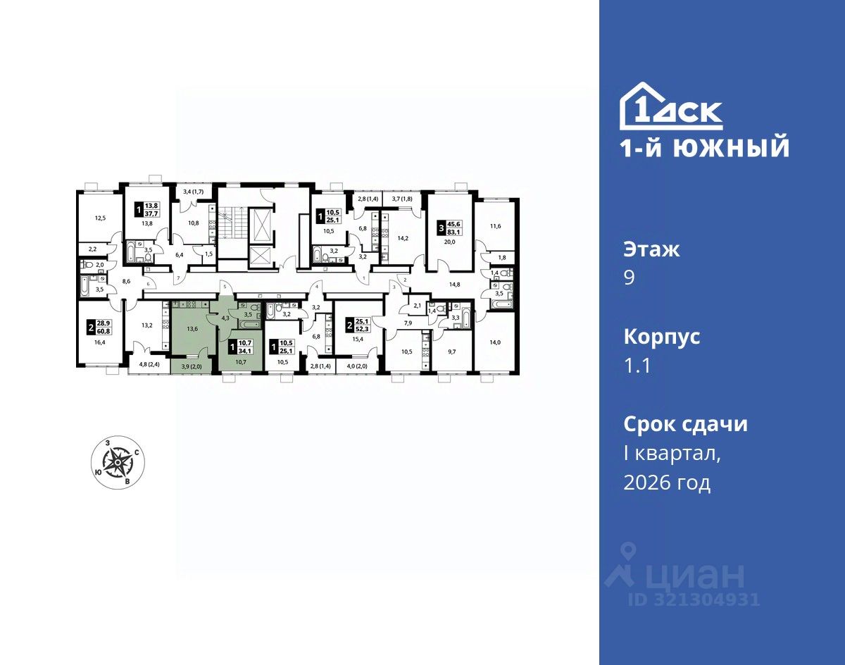 Максимальные скидки при 100% оплате. Trade-in вместо первоначального взноса - выгодно обменяйте вашу квартиру на новую! Прямая продажа от застройщика! Жилой Комплекс класса Комфорт плюс. Продаётся 1-к квартира номер 390 общей площадью 34.1 кв.м на 9-м этаже 24 этажного дома. Отделка Whitebox.