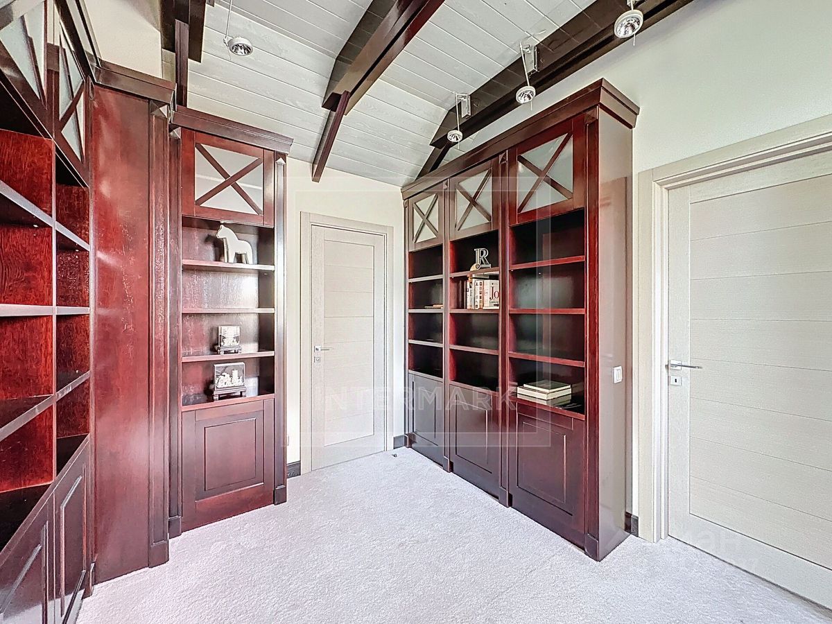 ID 47293. Прекрасный 3-этажный дом в закрытом охраняемом поселке ''Клуб 2071''. Общая площадь: 606 кв. м. Функциональная планировка дома включает: 1 уровень: прихожая с гардеробной, гостиная зона с камином, атмосферная столовая с выходом на террасу, полностью оборудованная кухня техникой Miele, гостевая спальня с с/у, комната свободного назначения, гараж на 2 м/м, технические и бытовые помещения, 2 уровень: холл, мастер-спальня с выходом на просторный балкон, гардеробной и ванной комнатой, 3 спальни, ванная комната, мансарда: кабинет, кинозал, гостевой туалет. Дом расположен на живописном благоустроенном участке в 24 сотки. В поселке есть своя инфраструктура: клубный дом для жителей с бассейном, фитнес-залом, йогой, чайной и детской комнатами, кинозалом, кафе-баром и профессиональной кухней, где можно проводить праздники. Общая территория благоустроена, есть спортивная площадка, проложены прогулочные дорожки, установлено парковое освещение. PLEASE FEEL FREE TO CONTACT INTERMARK REAL ESTATE TO GET DETAILED INFORMATION OR TO SET UP A VIEWING! 24/7 HELP DESK SERVICE WITH ENGLISH -SPEAKING OPERATORS