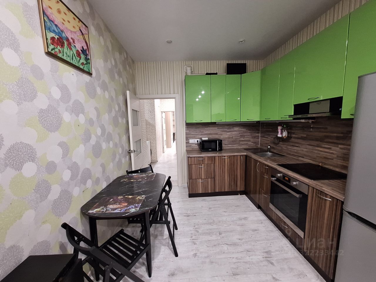 Продается отличная просторная однокомнатная квартира-распашонка с большой кухней и лоджией в жилом комплексе комфорт-класса ''Весна''. Комплекс с очень развитой инфраструктурой: есть школа, детский сад, множество магазинов, аптек, пекарен, салонов красоты, спортивных комплексов) и транспортной доступностью (27 км до МКАД с удобным минутным выездом на Киевское шоссе: в 30 мин езды на общественном транспорте - станция метро Саларьево, в 10 мин. - станция Апрелевка МЦД-4. В квартире выполнен качественный евроремонт, продается с бытовой техникой (холодильник, микроволновая печь, встроенные посудомоечная машина и варочная панель) и мебелью (кухонный, гостиный и спальный гарнитуры, прихожая, кровать, диван и пр.), в общем, заходи и живи.