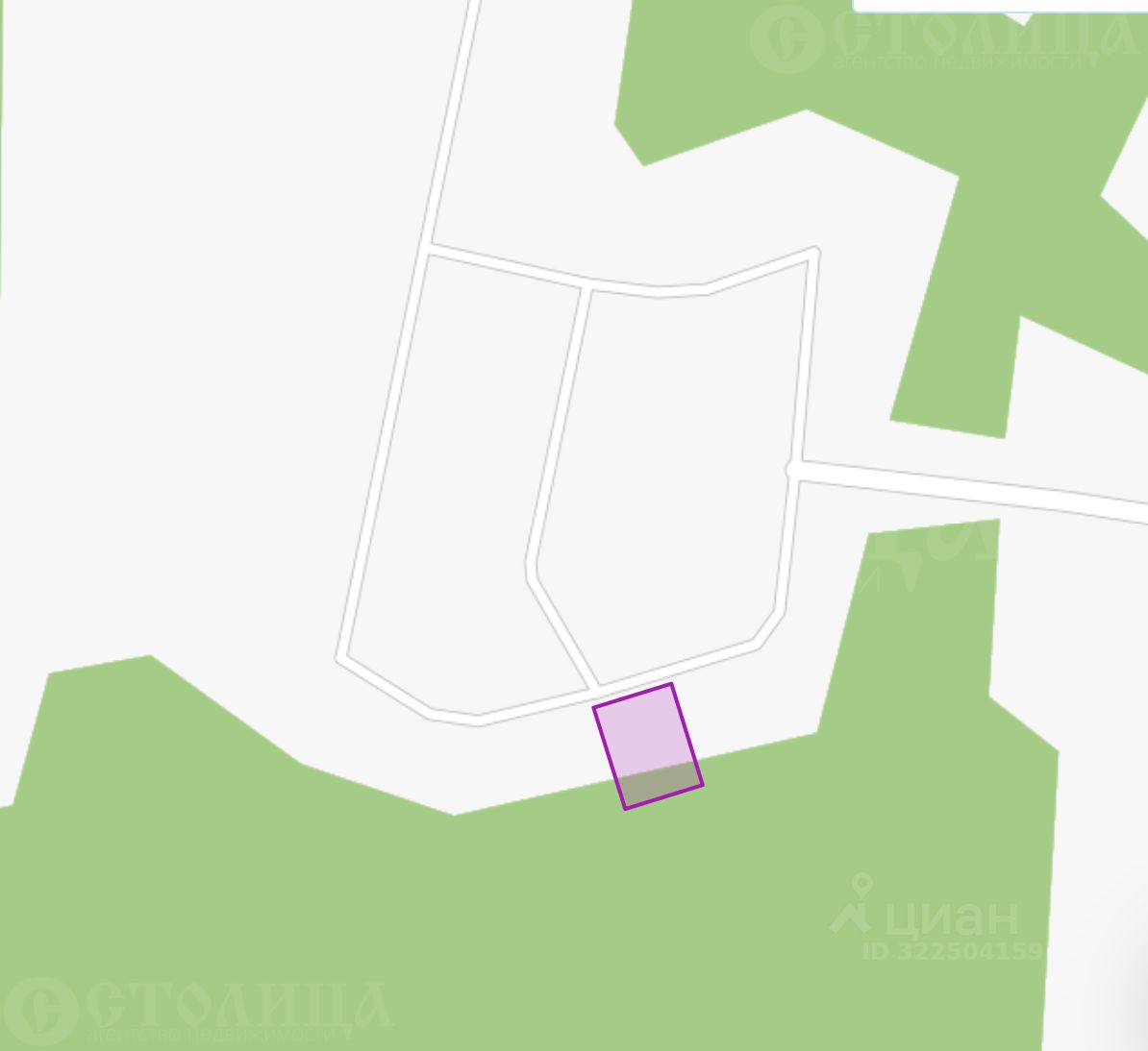 Участок прилесный, расположен между дорогой и лесом, соседи есть только справа и слева (слева уже построились). Удобный подъезд к участку и свободный проход в лес.