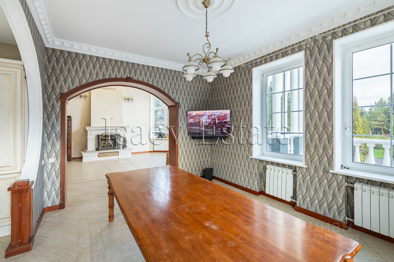 О ДОМЕ: Новый дом с ремонтом, никто не проживал. Просторная гостиная с камином, второй свет, террасы, балконы, бассейн, сауна, зона отдыха, своя котельная на зимний и летний периоды, высокоскоростной интернет по всему дому, видеонаблюдение и охрана. В доме расположено 6 спален со своей ванной комнатой с джакузи. Одна спальня с камином. Гардеробные. Просторная кухня укомплектована всей необходимой встроенной техникой: варочная панель, духовой шкаф, микроволновая печь, холодильник и морозильная камера. Просторная гостиная с камином. В подвале располагается бассейн, зона отдыха, винный погреб, холодильная комната, котельная. На стенах английские обои, центральная лестница и межкомнатные двери из дуба. На самом верхнем этаже расположена бильярдная и зона отдыха. КОММУНИКАЦИИ: Центральное газоснабжение, водоснабжение, канализация. ИНФРАСТРУКТУРА: Дом расположен в закрытом охраняемом коттеджном поселке. Въезд по пропускам. рядом расположен г. Апрелевка со всей необходимой инфраструктурой. 31 км от МКАД, 20 мин на машине до метро Саларьево. ДОКУМЕНТЫ: один взрослый собственник, свободная продажа, без обременений, все документы оформлены и готовы к сделке.