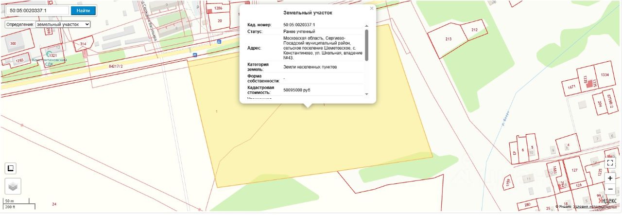 Сергиево-Посадский район, с/п Шеметовское, с. Константиново, ул. Школьная, вл. 43.
