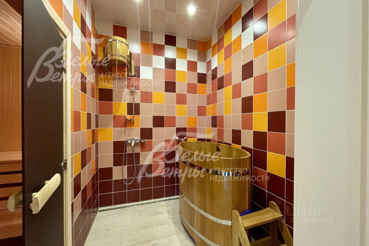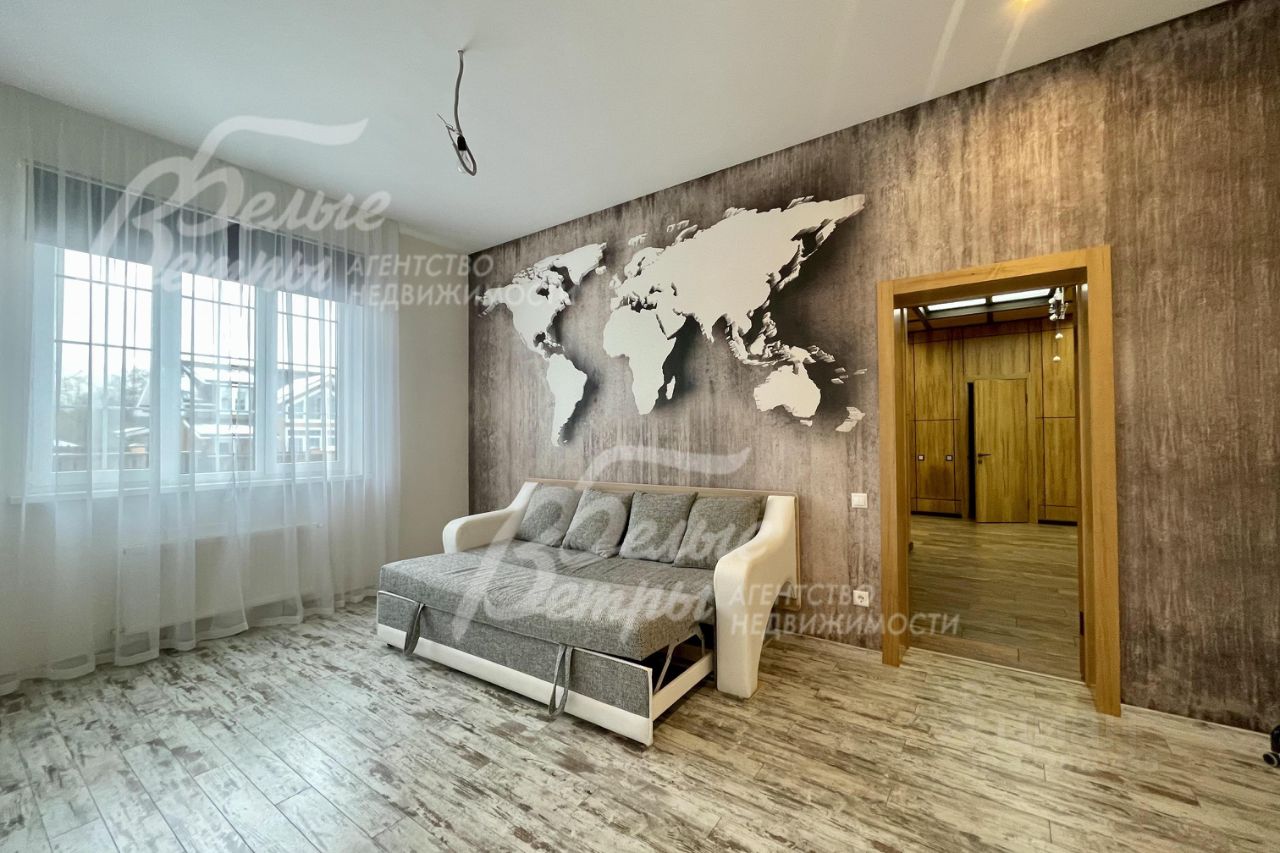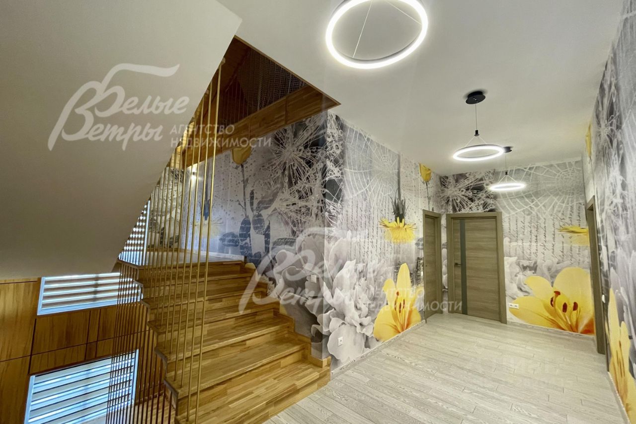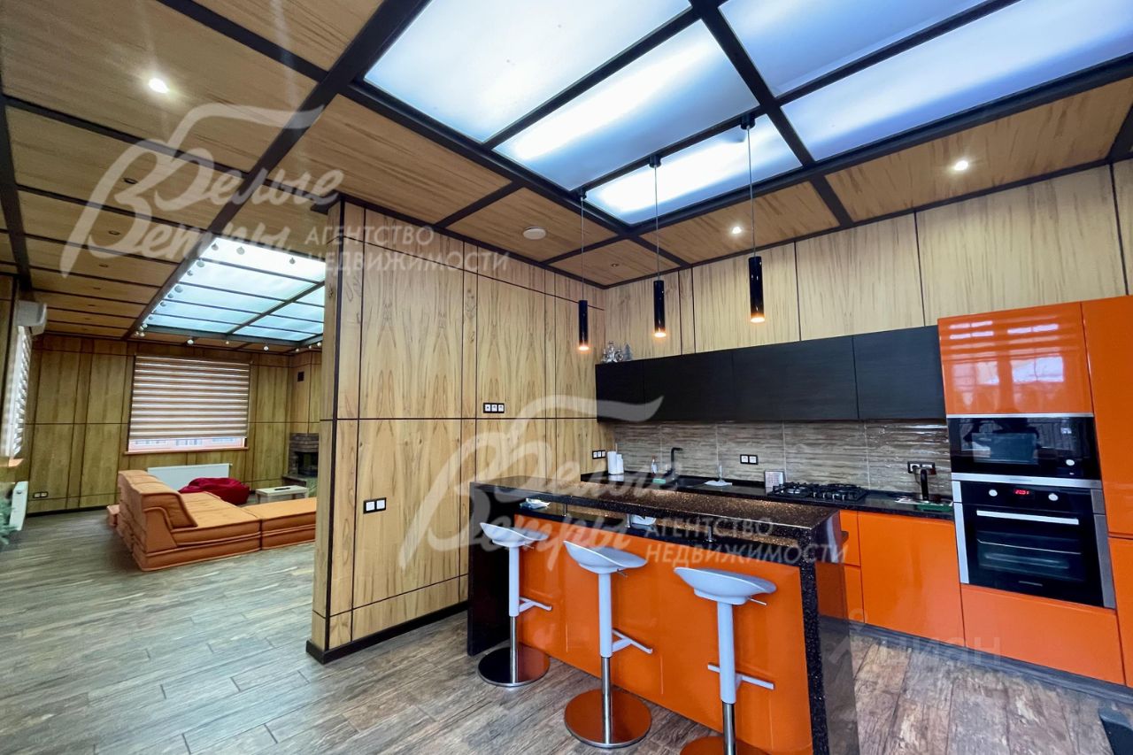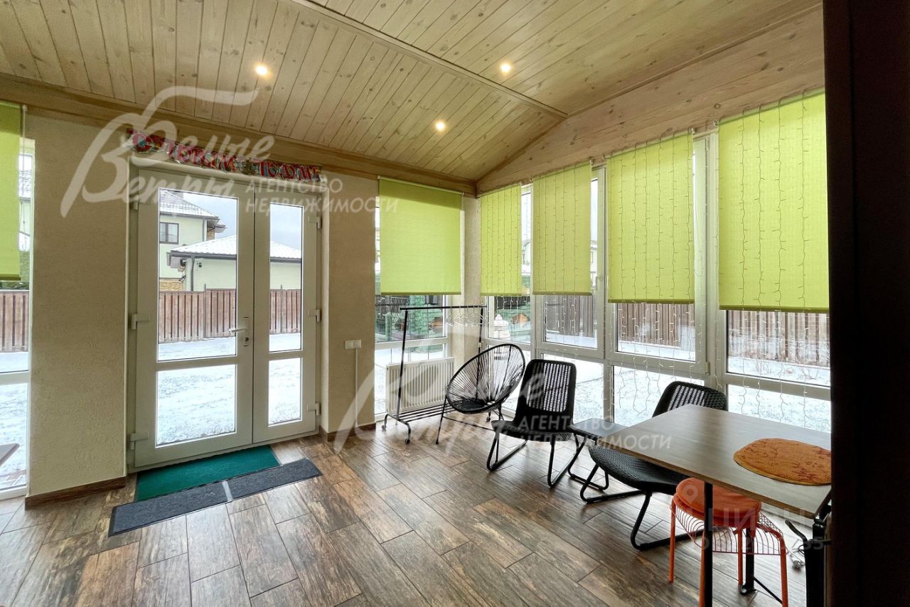Описание внутренней отделки: выполнена стильная современная отделка, присутствуют элементы стилей фьюжн и эко. Стены общих помещений отделаны панелями из натурального шпона ясеня, в таком же стиле - межкомнатные двери, в санузлах - плитка, в спальнях - обои, а также фотообои. На 1-ом этаже, веранде и в санузлах - полы из керамогранита с водяным подогревом, на 2-ом этаже - паркетная доска. В гостиной - камин, отделанный натуральным камнем и гранитом. Установлена качественная сантехника. Мансардный этаж отделан доской, на полу паркетная доска. Потолок в гостиной подвесной со встроенными лампочками, и панелями из оргстекла со встроенным светом. Двери на 2-ом этаже ламинированные в едином стиле..