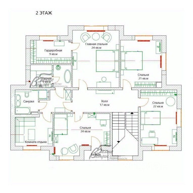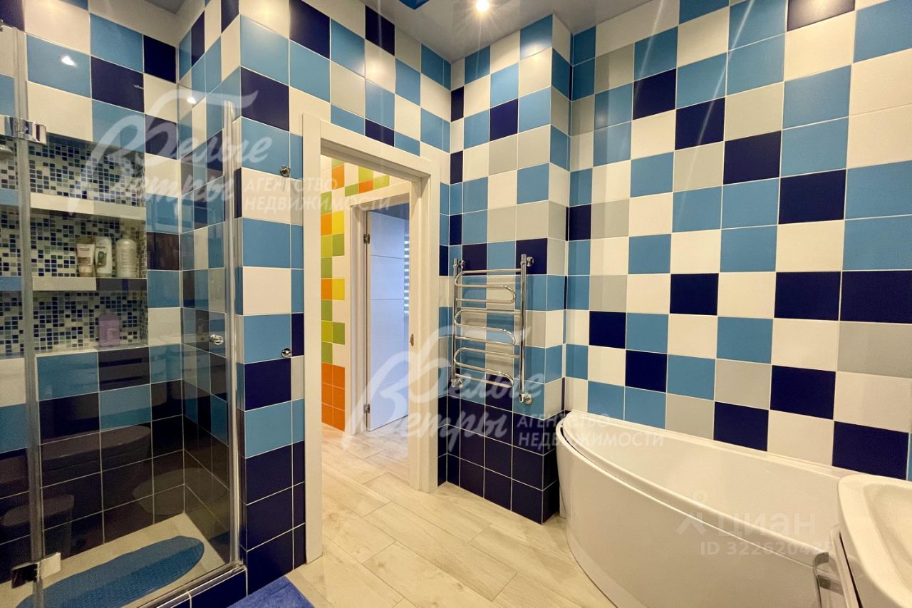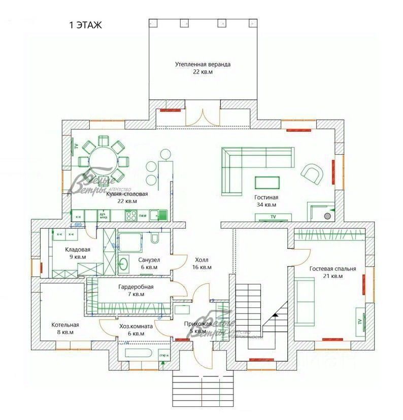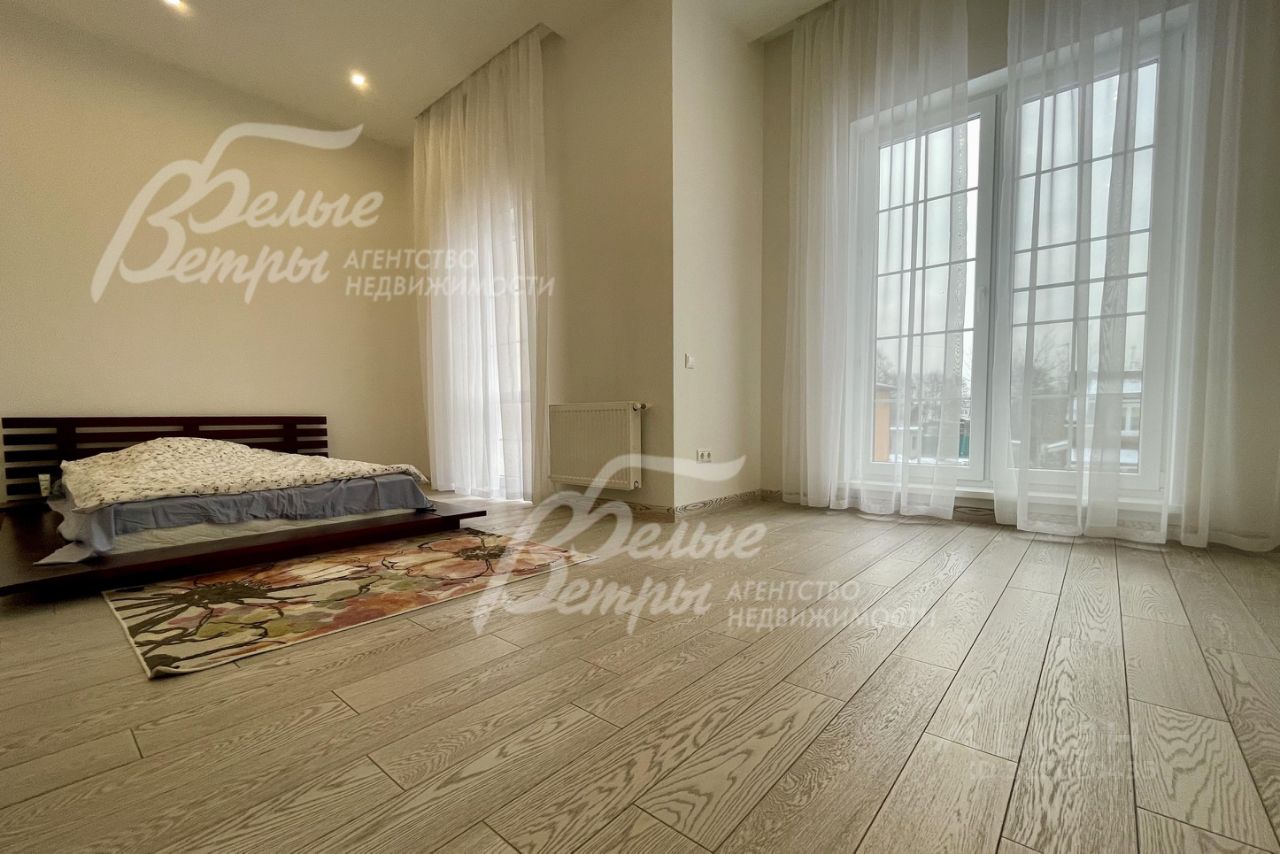 Мебель, оборудование: установлен кухонный гарнитур, выполненный под заказ из глянцевого МДФ (двухцветный - оранжевый и венге), присутствует остров с барным столом и стульями. Техника встроенная: посудомоечная машина, газовая панель, микроволновая печь, духовой шкаф - всё Kuppersberg, холодильник Liebherr, также в кладовой при кухне морозильная камера и дополнительный холодильник. ТВ Sony (в гостиной), пылесос Karcher, стиральная машинка Samsung. В зоне столовой стол, стулья, в гостиной диван, в спальнях кровати двуспальные, в гостевой спальне диван, есть зоны гардеробной. Занавески или рулонные шторы, люстры, светильники и встроенные лампочки в подвесных потолках..