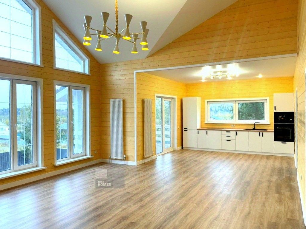 Арт. 119521254 Подходит под семейную, льготную ипотеку! Акция! Цена снижена на 400 тр!!! Новый светлый дом в тихой подмосковной деревне. Новорижское шоссе, 38 км от МКАД, д. Котово. Дом одноэтажный, 134,2 кв.м, каркасный, утепление стен, пола и потолка 200 мм, фундамент свайно-винтовой, кровля - гибкая черепица, окна - стеклопакеты. Полностью отделан, оборудован системами круглогодичного жизнеобеспечения, сантехникой и кухонным гарнитуром. Простая и оч.удобная планировка: прихожая, холл, гостиная с потолком под конек крыши, панорамным остеклением, зоной кухни-столовой и выходом на палубную веранду., 3 спальни, гардеробная, 2 санузла, котельная/прачечная. Коммуникации: электричество 15 кВт ( прямой договор, деревенский тариф), отопление - от электрокотла, теплые полы + конвекторы под окнами, водопровод от своей скважины, канализация - септик (бетонированный колодец 5 колец), интернет ((провайдер Истра.нет), Газопровод проходит вдоль границ участка, возможно подключение по соц.программе. Участок 8 соток (земли населенных пунктов, разрешенное использование - ИЖС), ровный, сухой, с небольшим уклоном, 26х30 м. Огорожен со всех сторон, установлены автоворота. Деревня небольшая, находится на взгорке, тихая и уютная. В деревне сетевой супермаркет, недалеко дом отдыха, санаторий Новая Истра, в соседней деревне Давыдовское - магазины, ресторанчик. До ж/д станций Новый Иерусалим и Истра ходят автобусы и маршрутки. Здесь тихо, красиво и безопасно, воздух целебен, вода чиста. Приезжайте и убедитесь в этом сами!