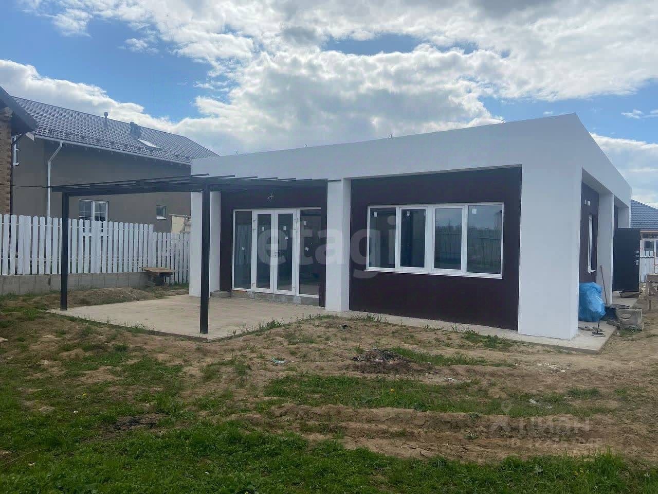 ОПИСАНИЕ ДОМА: - Дом выполнен по монолитно-каркасной технологии (монолитная плита фундамента - монолитные стены - монолитная крыша из ж/б плит). - Дом является энергоэффективным за счёт применения технологии энергосбережения (создается ''эффект термоса'' ввиду применения при строительстве пустотелых блоков). Затраты на отопление минимальны. На данный момент отопление электрическое, после проведения работ по газификации возможен переход на газовое отопление. - Технология строительства стен дома: пустотелые блоки 400 мм. - утеплитель пенополистерол - 2 слоя штукатурки - пластиковая сетка - финишная отделка под ''Короед''. - Электричество 15 кВт. (счетчики). - Газ по границе, подана заявка на получение ТУ. - Установлен бойлер на 150 литров, электрический котел 4,5 кВт. - Септик Евролос ЭКО 4, плюс в колодце 4 кольца. - Водоснабжение централизованное. - Пластиковые окна Rehau с двойным стеклопакетом. - Качественные, натяжные потолки. Высота потолков 3 метра. - Потолки в санузле и ванной комнате - пластиковые панели. - Вентиляция в каждом помещении. - Кухня-гостиная-столовая, две спальни, ванная комната и помещение для инженерных систем. Выход из гостиной на патио.