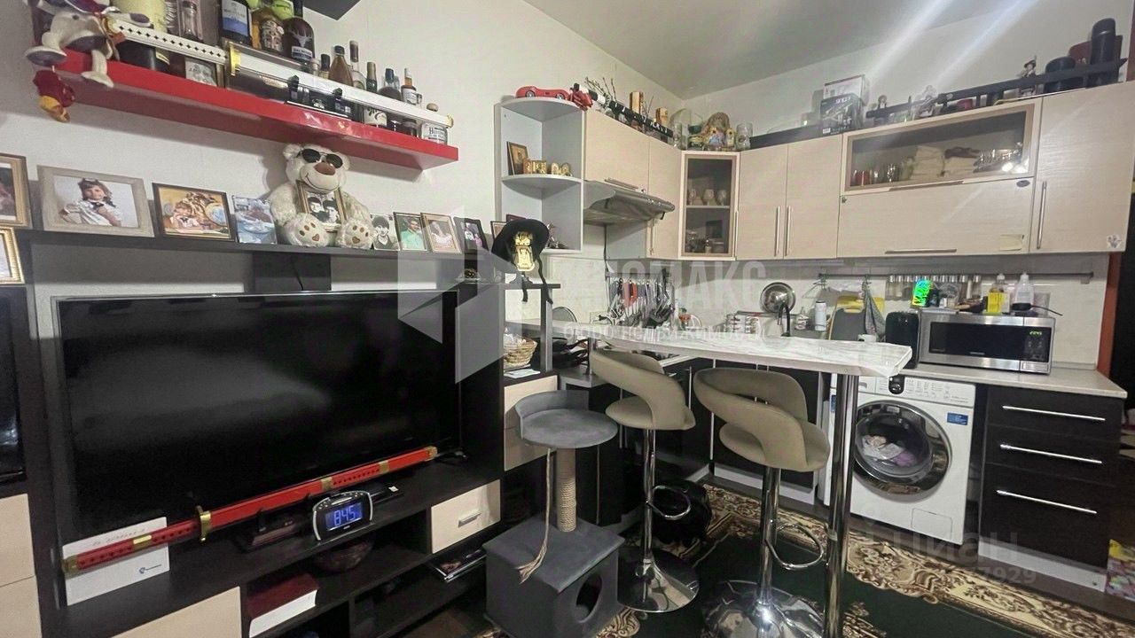 По квартире- просторная комната с застекленной лоджией. Есть вместительная гардеробная, совмещенный санузел. В квартире после продажи остается мебель и техника.