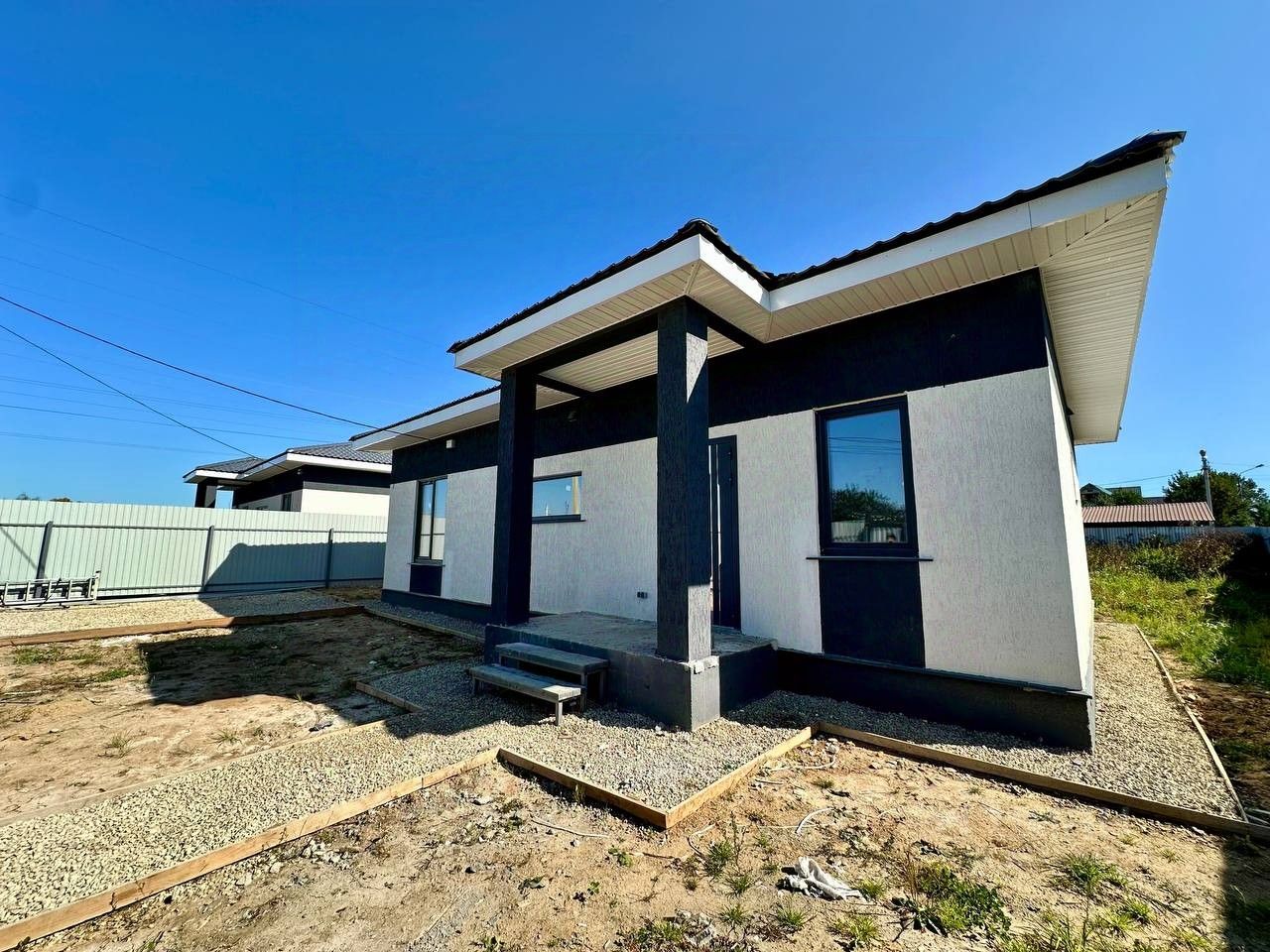 - Участок 7 соток — место для сада, зоны барбекю и детской площадки. - Огорожен забором из металлического евроштакетника, создающего ощущение безопасности и уюта. - Откатные ворота — удобный въезд на территорию. - Наружное освещение по периметру участка — безопасность в любое время суток.