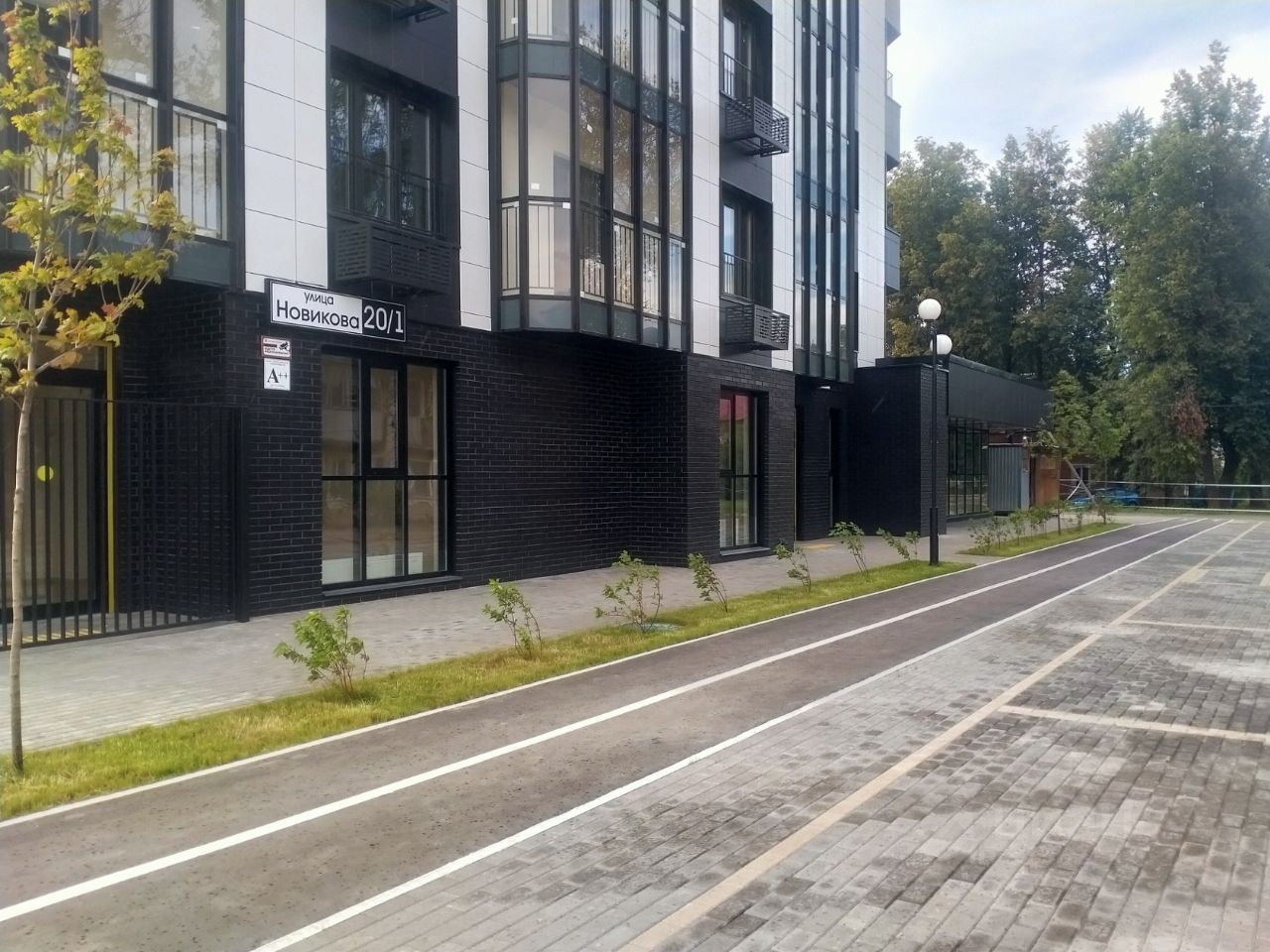Проектом предусмотрено размещение детской игровой площадки, спортивной площадки, размещение мест для отдыха. С торца нового дома, на первом этаже размещается территория детского сада с прогулочными площадками и теневыми навесами. Ландшафтное озеленение предполагает высадку кустарников, газона, хвойных и лиственных