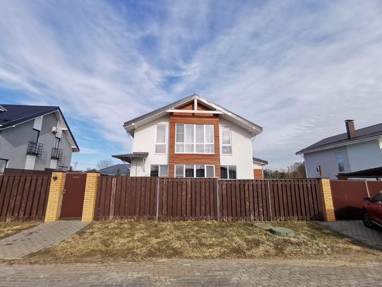Участок 6 соток, газон, парковка на два автомобиля.