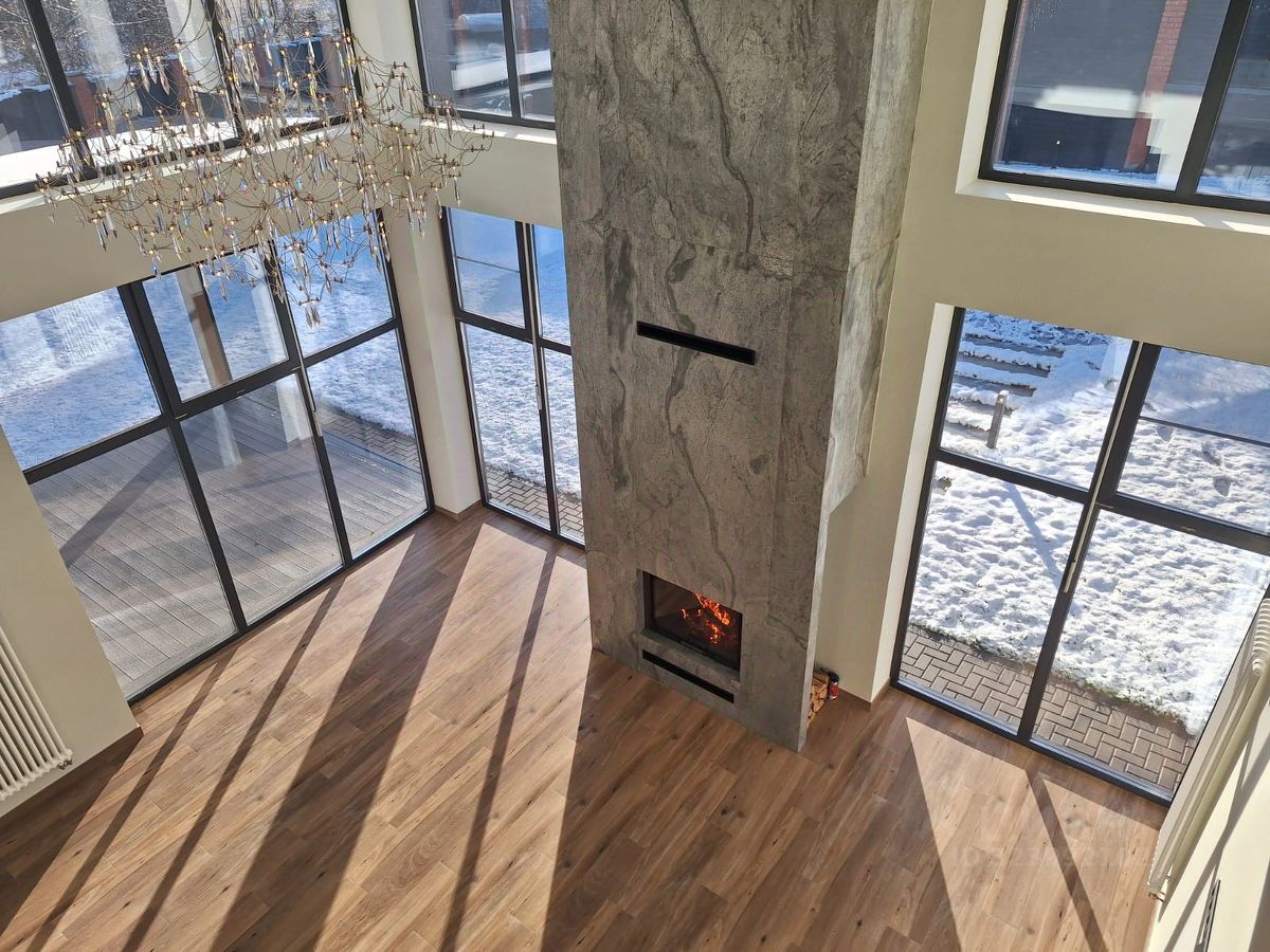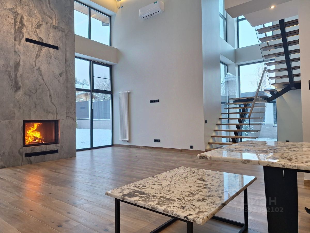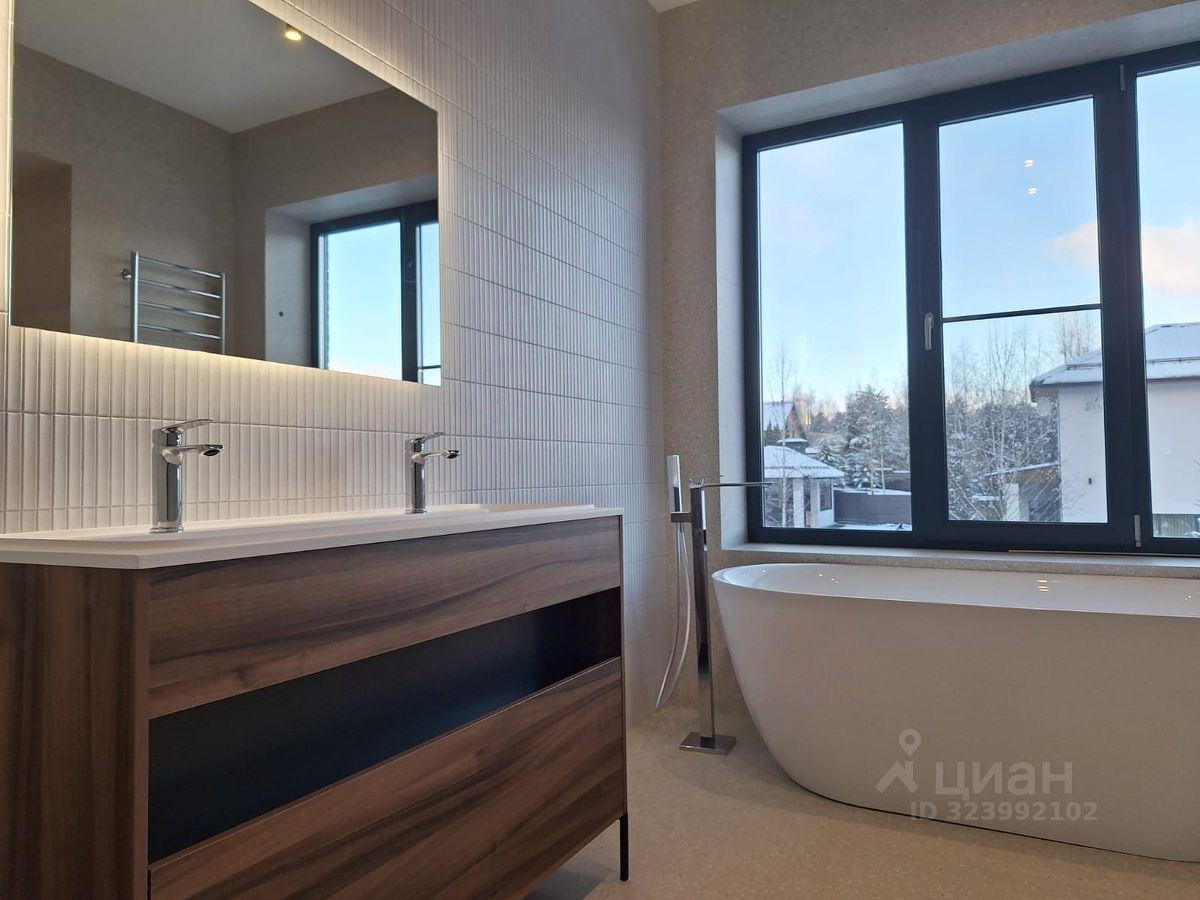 Новый, шикарный дом с камином, под ключ. Расположен в тихом, уединенном месте в окружении леса и реки Истра. Идеальное место для загородной жизни. Кухня - гостиная со вторым светом с дровяным камином и выходом на просторную крытую террасу. За счет больших окон в доме много естественного освещения. Во всем доме теплые водяные полы, все спальни с кондиционерами, удаленное управление котельным оборудованием со смартфона. Мастер-спальня со своей гардеробной и санузлом, две детские спальни, гостевая спальня первого этажа, гардеробные и с/у. Из окон открывается вид на участок и посёлок.