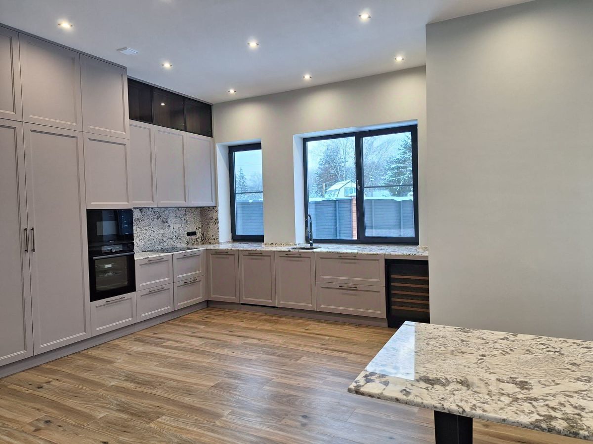 Новый, шикарный дом с камином, под ключ. Расположен в тихом, уединенном месте в окружении леса и реки Истра. Идеальное место для загородной жизни. Кухня - гостиная со вторым светом с дровяным камином и выходом на просторную крытую террасу. За счет больших окон в доме много естественного освещения. Во всем доме теплые водяные полы, все спальни с кондиционерами, удаленное управление котельным оборудованием со смартфона. Мастер-спальня со своей гардеробной и санузлом, две детские спальни, гостевая спальня первого этажа, гардеробные и с/у. Из окон открывается вид на участок и посёлок. Фундамент - свайный ростверк, стены - теплая керамика, перекрытия железобетонные, кровля из гибкой черепицы, окна ПВХ 70мм с ламинацией с двух сторон, стекла энергосберегающие с антибликовым напылением. Участок с ландшафтным дизайном, огорожен по периметру, растут хвойные деревья, кустарники, уличное освещение, автоматический полив, видеонаблюдение. Навес на 2 авто, зарядка для эл. автомобиля 7 кВт., хозблок для хранения не сезонных вещей. Обжитой, уединенный, прилесной посёлок. Тихое и спокойное место для постоянного проживания. Поселок граничит с лесом и рекой Истра. Удобный выезд на Новорижское шоссе.
