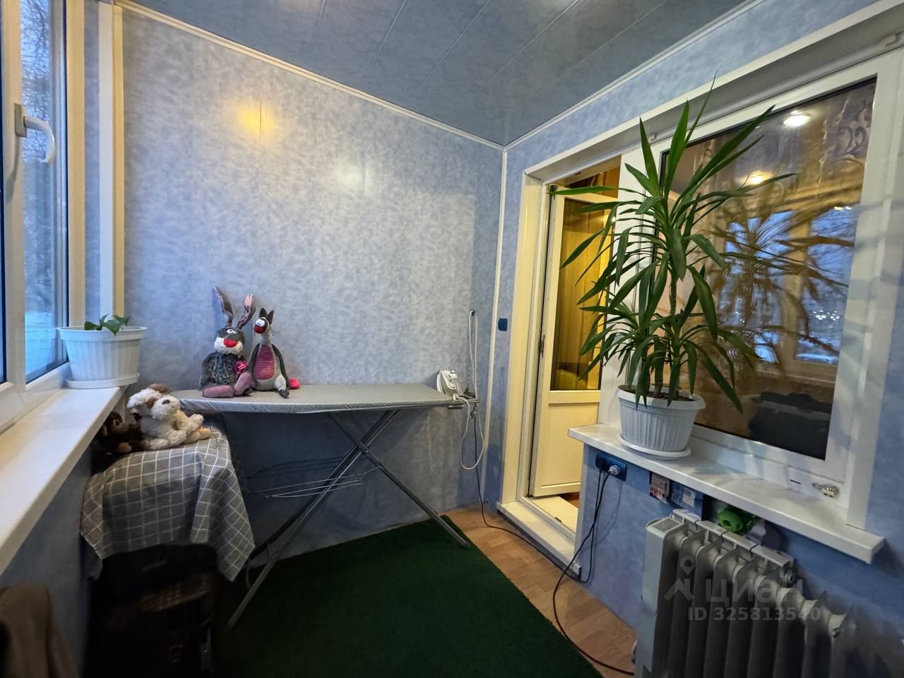 Лоджия большая с отделкой, застеклена.